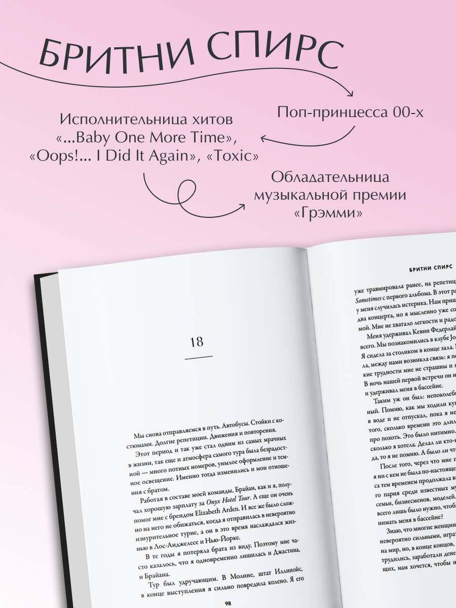 Эксклюзивный комплект с уникальной фигурной закладкой Бритни Спирс. Одни из самых продаваемых и обсуждаемых мемуаров в истории впервые на русском языке! Биография Бритни Спирс – это не только история успеха молодой и яркой поп-звезды из 2000-х годов, но и огромное количество кошмарных событий, которые перенесла певица: ранняя беременность от Джастина Тимберлейка, контроль со стороны отца, зависимость от алкоголя и несчастливые отношения с партнерами. Бритни Спирс прошла через все это, неоднократно сломавшись, но все-таки найдя себя. Узнайте ее историю из первых уст.