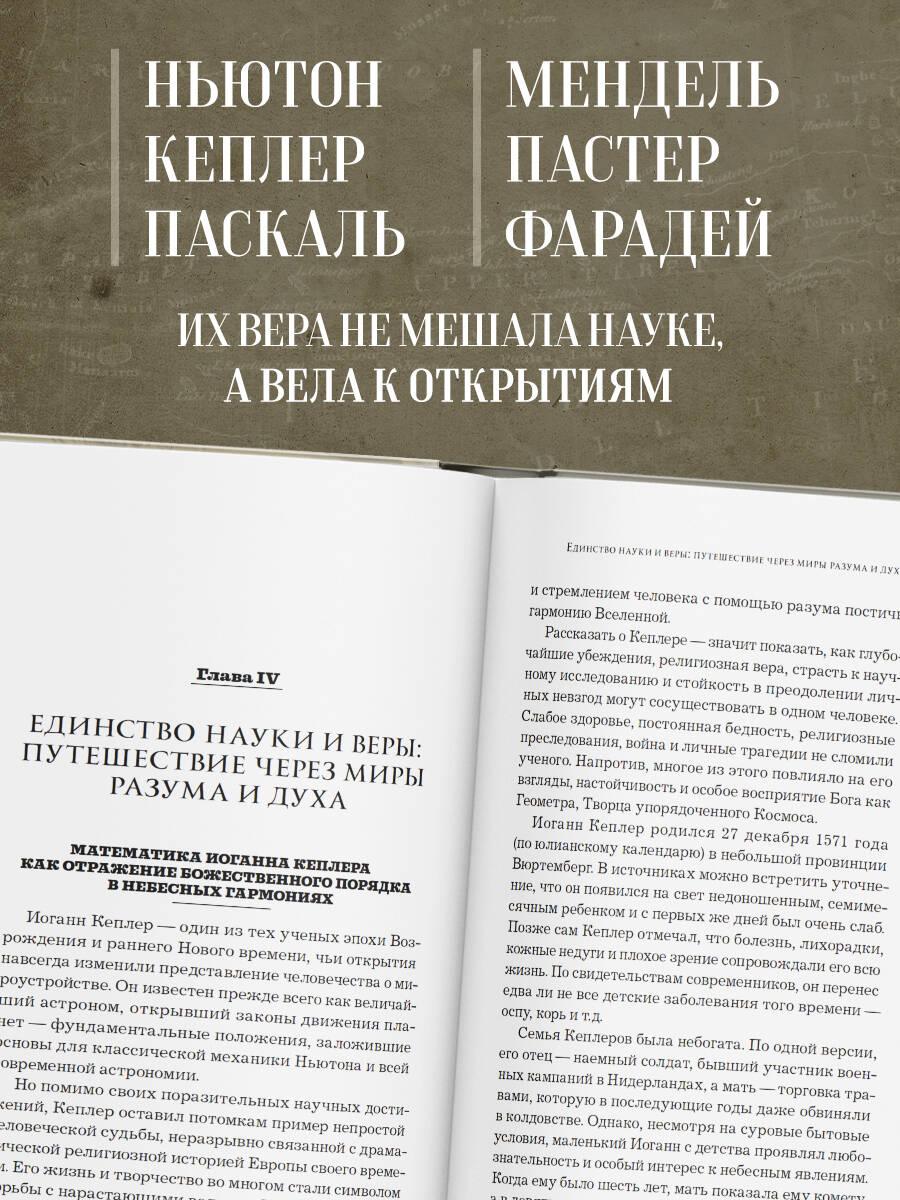 Книга известного журналиста и композитора Андрея Резниченко предлагает читателю увлекательное исследование сложных и порой неожиданных взаимоотношений между духовной верой и научным познанием. Вопреки распространённому мифу о конфликте между наукой и религией, автор показывает, что на протяжении всей истории многие из величайших учёных, в частности Исаак Ньютон, Иоганн Кеплер, Майкл Фарадей и многие другие, находили вдохновение в своих духовных убеждениях и черпали моральные ориентиры из религиозных ценностей.