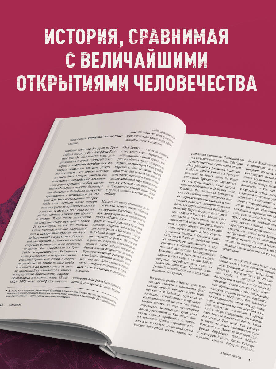 Автор множества бестселлеров, Уэйд Дэвис, опираясь на более чем десятилетние исследования, живо воссоздает героические усилия Мэллори и его товарищей, учитывая их значительные достижения, в широкий исторический контекст: от имперских амбиций Британии XIX века до войны, которая сформировала поколение Мэллори. Их страна была сломлена, но экспедиции на Эверест стали мощным символом национальной надежды. В своих содержательных исследованиях Уэйд Дэвис создает портрет этих выдающихся людей и необыкновенного времени, в котором они жили.