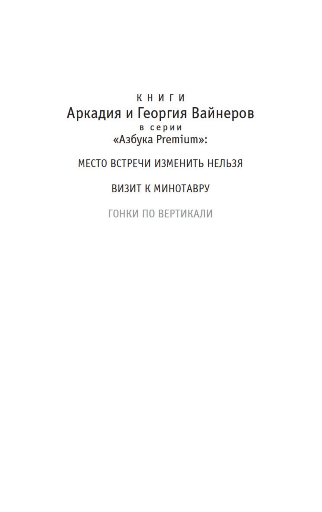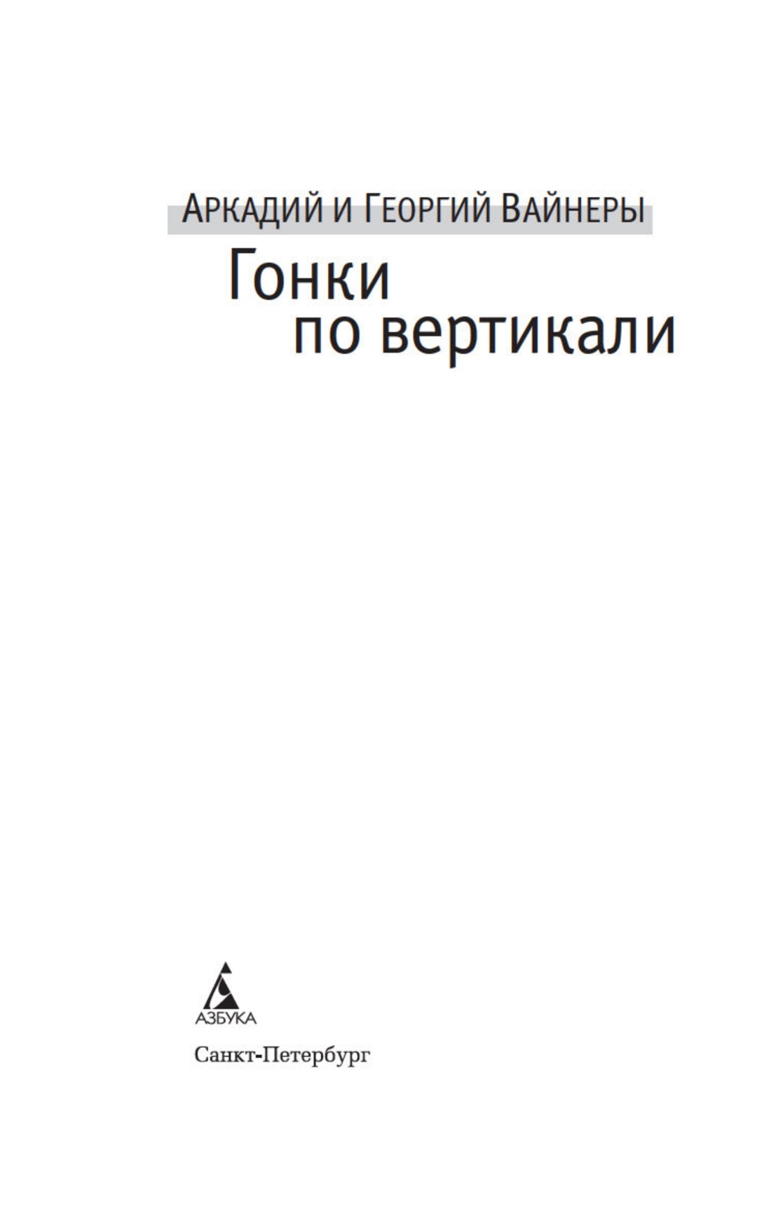 «Гонки по вертикали» (1974) — одно из самых известных произведений братьев Вайнеров. И в то же время — почти неизвестное: будучи экранизирован, роман оказался отчасти заслонен одноименным фильмом (1982), в котором сыграли такие популярные актеры, как Андрей Мягков и Валентин Гафт. В фильме сохранилась главным образом внешняя фабула: история противостояния следователя Стаса Тихонова и вора Лехи Дедушкина по кличке Батон. Борьба справедливости с беззаконием, трудолюбия с тунеядством, добра со злом...