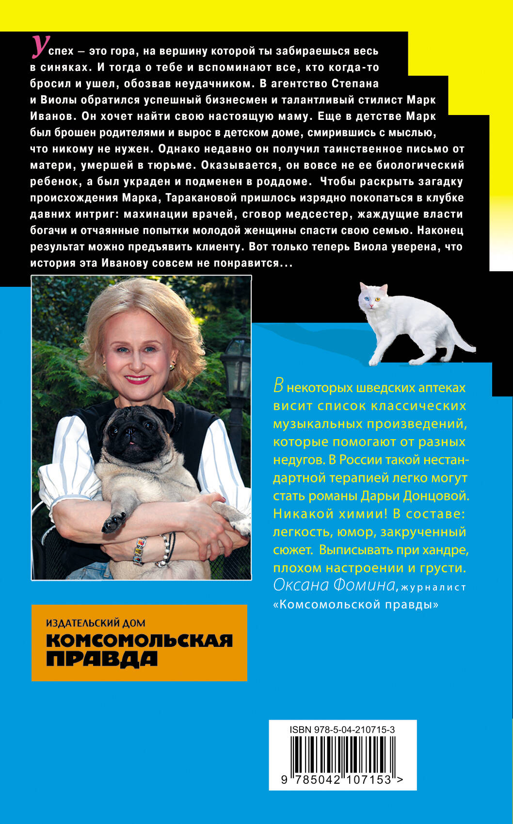 Успех — это гора, на вершину которой ты забираешься весь в синяках. И тогда о тебе и вспоминают все, кто когда-то бросил и ушел, обозвав неудачником. В агентство Степана и Виолы обратился успешный бизнесмен и талантливый стилист Марк Иванов. Он хочет найти свою настоящую маму. Еще в детстве Марк был брошен родителями и вырос в детском доме, смирившись с мыслью, что никому не нужен. Однако недавно он получил таинственное письмо от матери, умершей в тюрьме. Оказывается, он вовсе не ее биологический ребенок, а был украден и подменен в роддоме. Чтобы раскрыть загадку происхождения Марка, Таракановой пришлось изрядно покопаться в клубке давних интриг: махинации врачей, сговор медсестер, жаждущие власти богачи и отчаянные попытки молодой женщины спасти свою семью. Наконец результат можно предъявить клиенту. Вот только теперь Виола уверена, что история эта Иванову совсем не понравится...