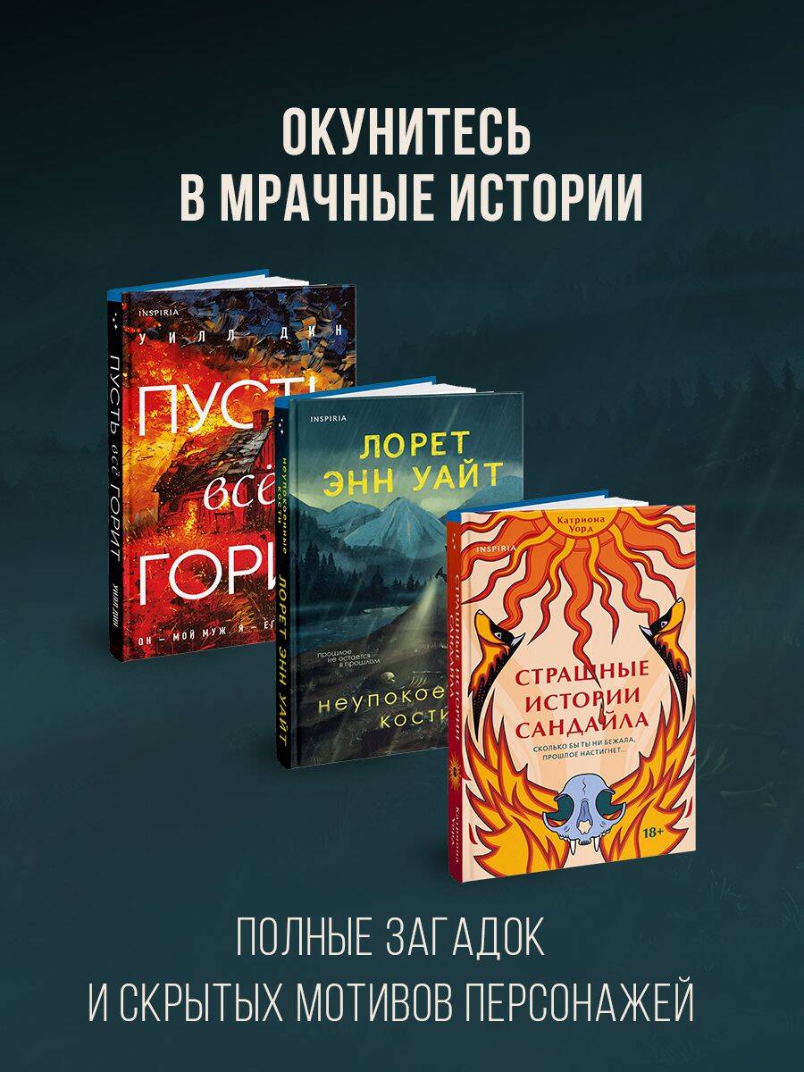 Комплект из 3-х книг с подарком (Пусть все горит, Неупокоенные кости, Страшные истории Сандайла)