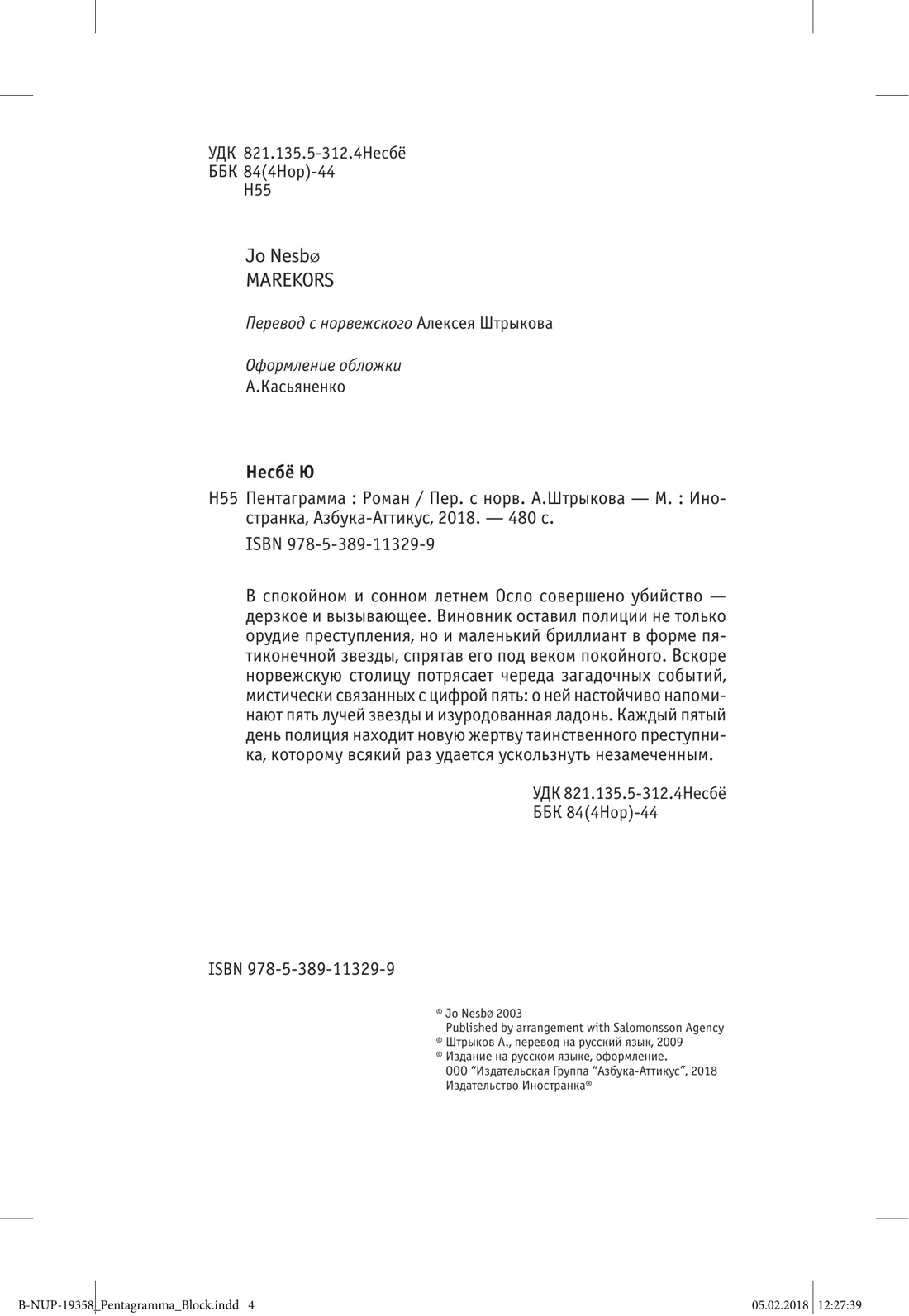 | Вес (кг) 0.233 | Серия Несбё Ю. (покет) | ISBN 978-5-389-11329-9 |