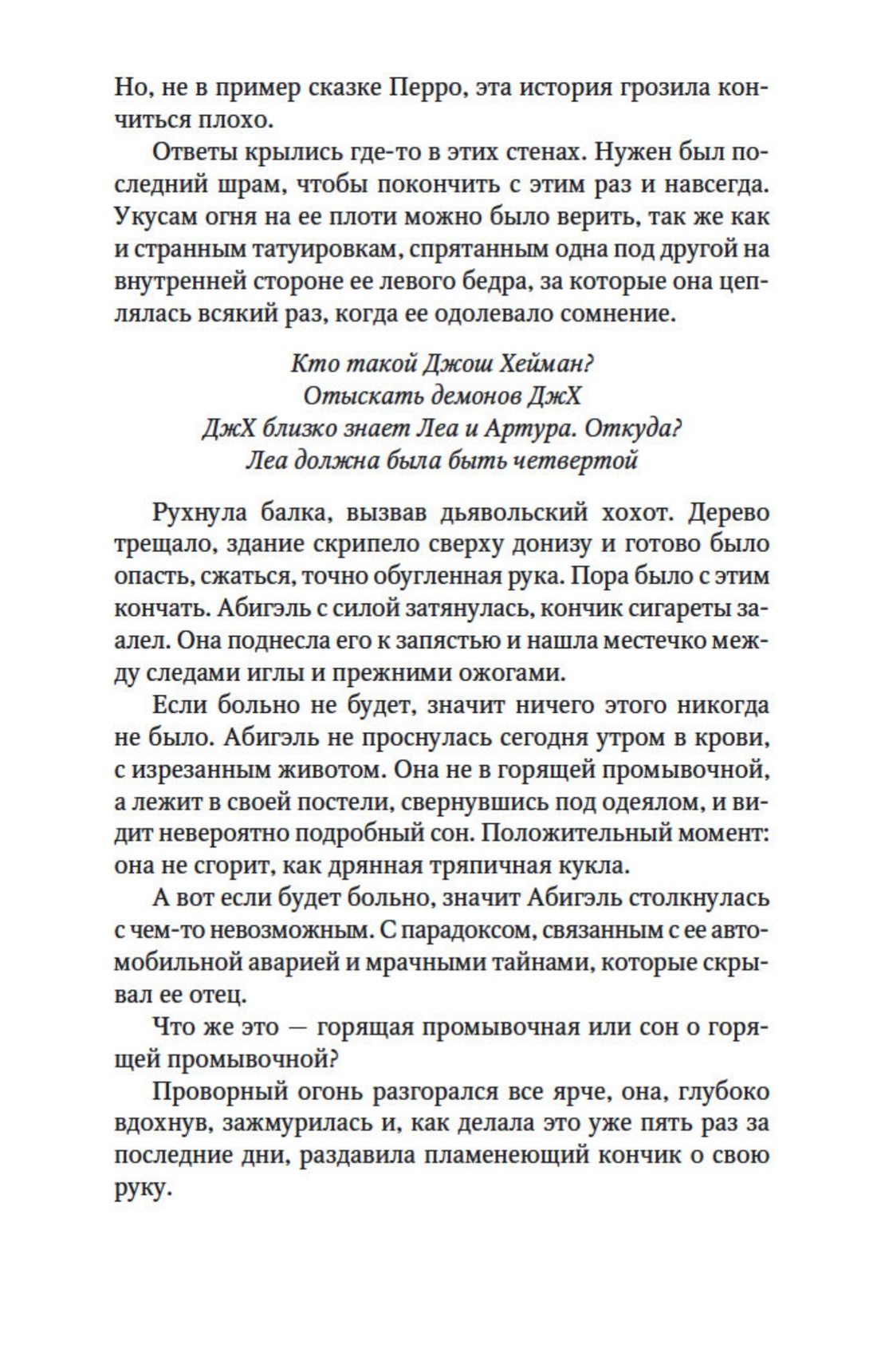 Абигэль — выдающийся психолог, специалист, которого полиция часто призывают на помощь в серьезных расследованиях. Однако ее жизнь с давних пор омрачает нарколепсия — таинственная болезнь, из-за которой сны перепутаны с действительностью. Теперь Абигэль идет по следу человека, который уже похитил троих детей, и, похоже, вскоре у полиции будет четвертая жертва... Вопросы множатся, похититель где-то совсем рядом. Но кто он? Ответ хранится в памяти Абигэль — памяти, где реальность неотвратимо сжимается, как шагреневая кожа...