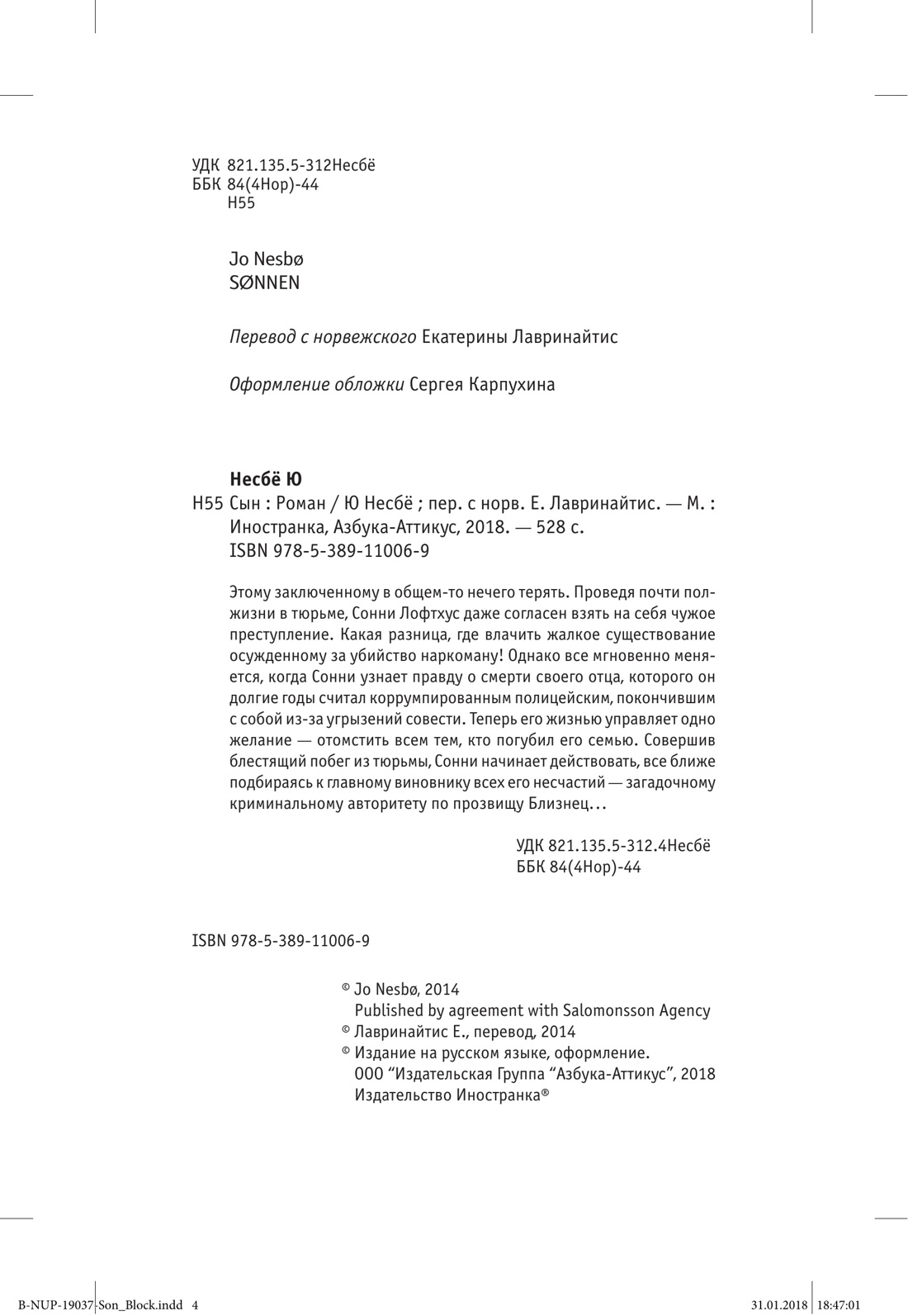 | Вес (кг) 0.256 | Серия Несбё Ю. (покет) | ISBN 978-5-389-11006-9 |