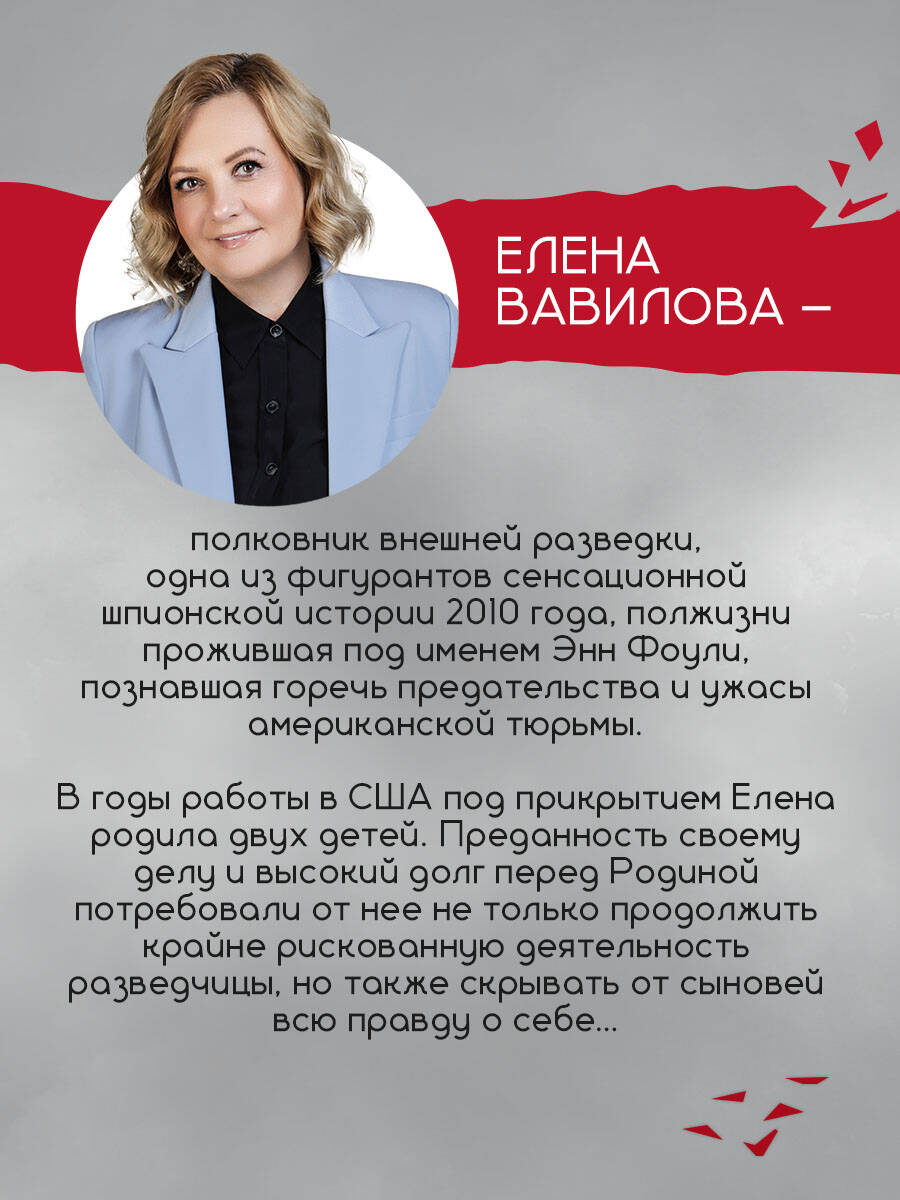 Новый роман разведчицы-нелегала Елены Вавиловой, автора бестселлера «Женщина, которая умеет хранить тайны», проданного тиражом свыше 12 000 экземпляров.