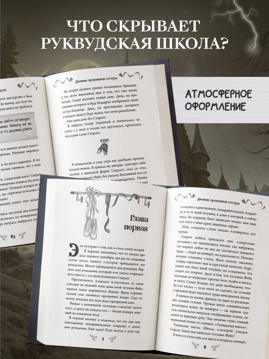 Когда Скарлетт скончалась от гриппа, ее сестре-близняшке Айви предложили занять место погибшей в Руквудской школе. Она должна притвориться Скарлетт! Айви отправляется в школу и сразу понимает: здесь творится что-то странное. Ученики пропадают, директриса замышляет неладное, а отрывки дневника сестры, спрятанные в потаенных уголках школы, намекают на страшную опасность.