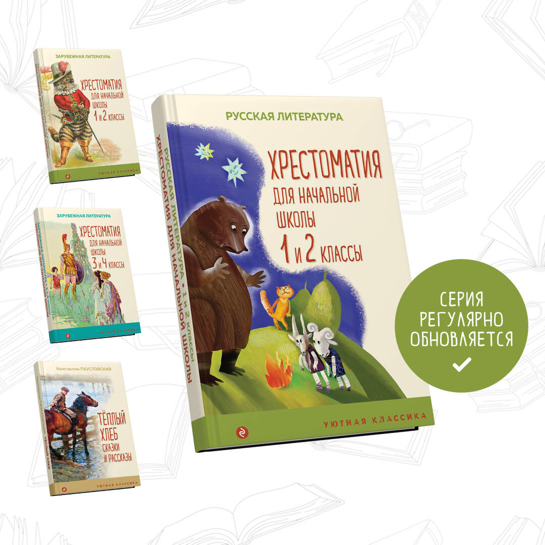 В книгу включены русские народные сказки, стихотворения и сказки А. Пушкина, рассказы для детей Л. Толстого, К. Ушинского, В. Даля, басни И. Крылова, стихотворения В. Маяковского, К. Чуковского, рассказы и повести русских писателей, в том числе В. Одоевского, В. Бианки, М. Пришвина, В. Катаева, М. Зощенко, А.П. Гайдара, и других авторов, чьи произведения входят в школьную программу и изучают в 1 и 2 классах начальной школы.