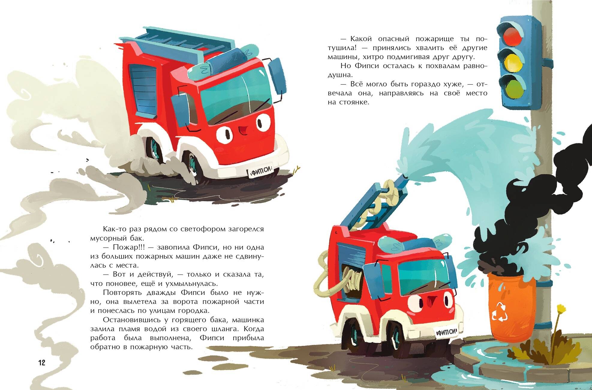В этих книгах маленький красный Трактор Трум побеждает свои страхи и находит силы признаться в своих ошибках, маленькая пожарная Машинка Фипси верит в себя и смело следует своей мечте, а маленький Вертолёт Вжух побеждает свой страх полётов ради спасения туристов.