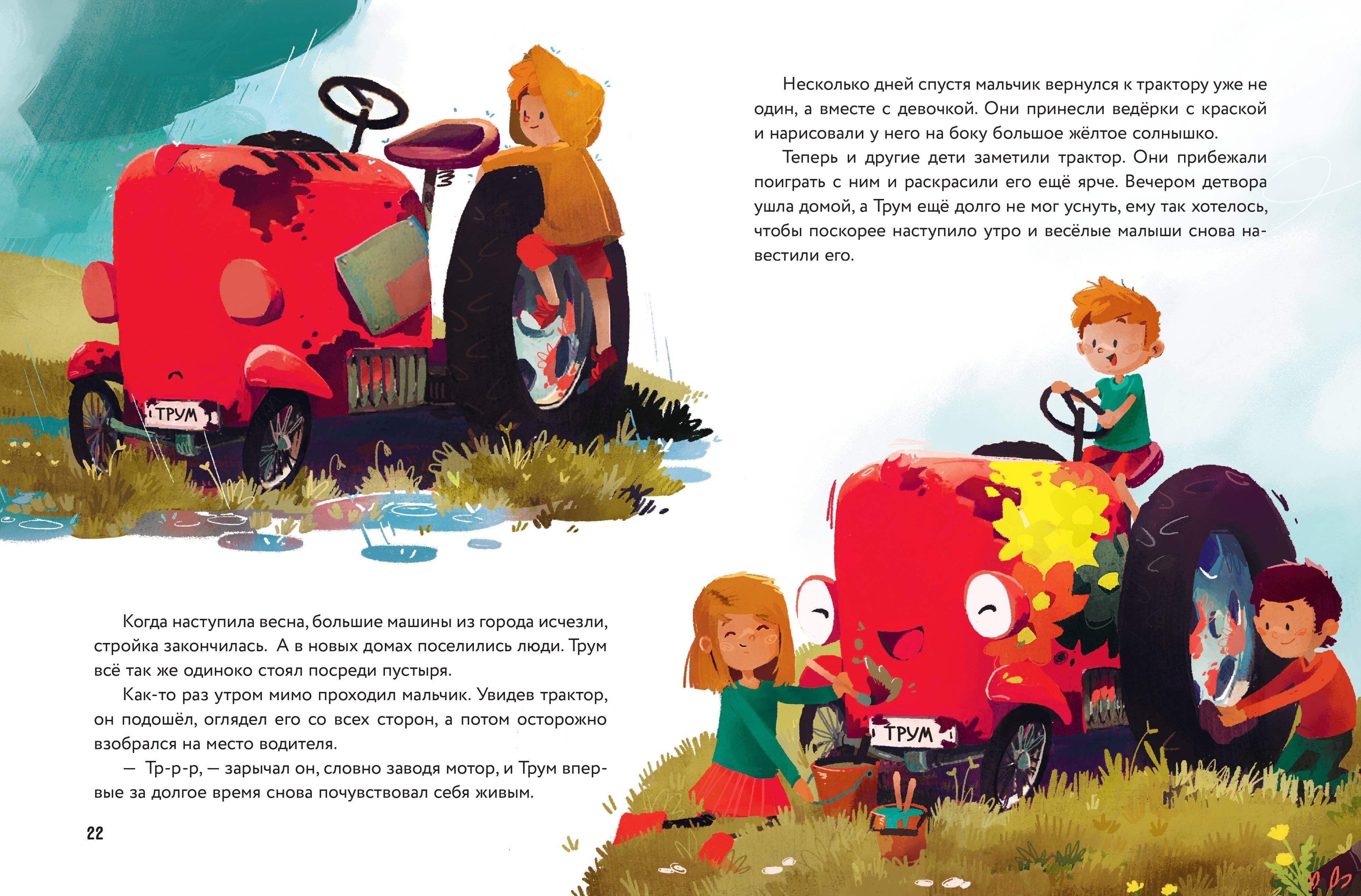 В рассказах маленький Трактор Трум встречает свою первую зиму, сталкивается с вопросами соперничества и дружбы, уживается с беспокойными соседями, учится совершать взрослые поступки, исполняет мечты, побеждает свои страхи, спасает друзей и даже отправляется в путешествие на поиски счастья!