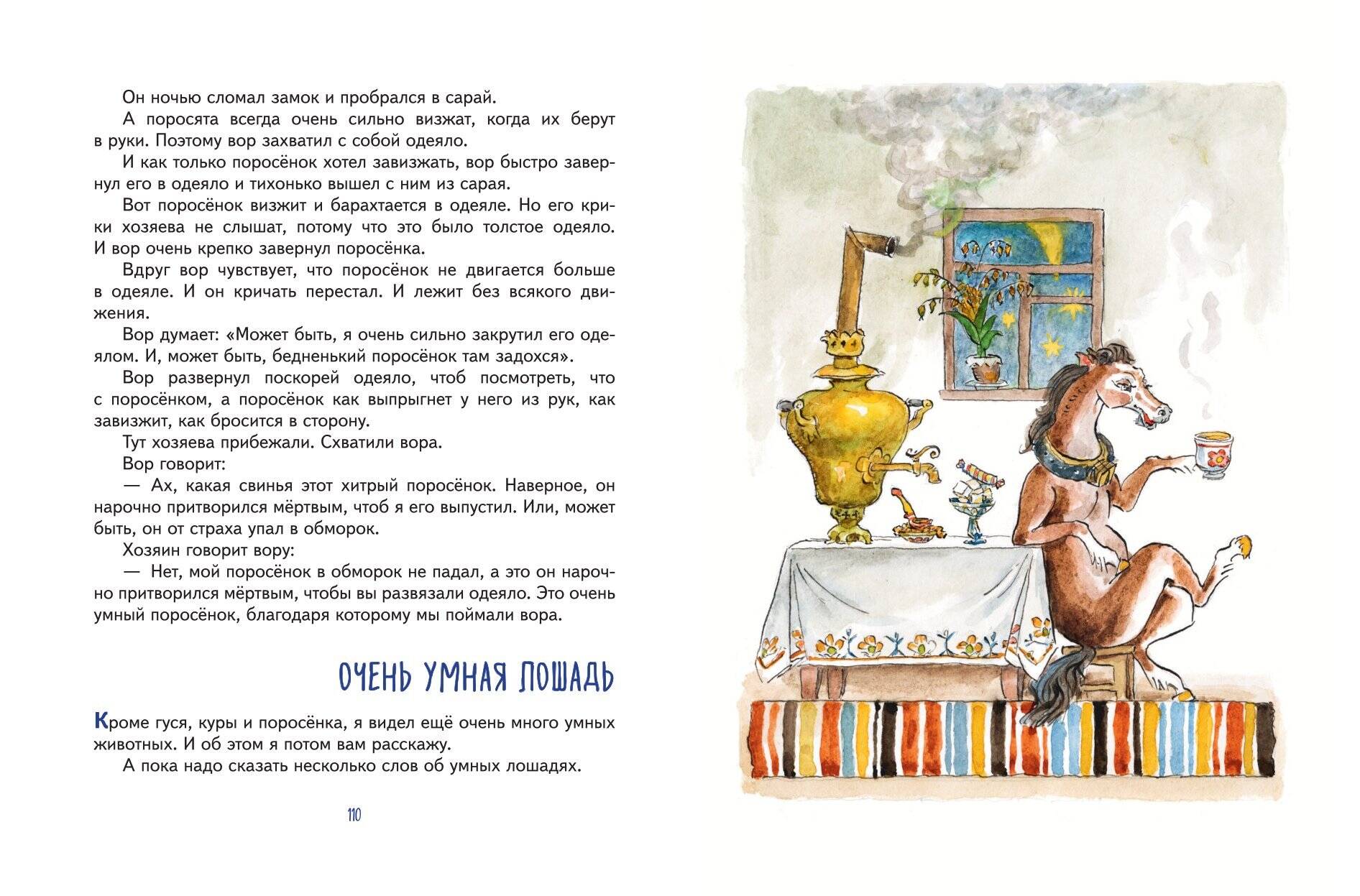 Особенный интерес вызывают короткие, похожие на сказки, рассказы об умных животных. Кошки, белки, лошади и даже поросёнок проявляют удивительную сообразительность и заставляют читателей повнимательнее присмотреться к своим домашним питомцам.