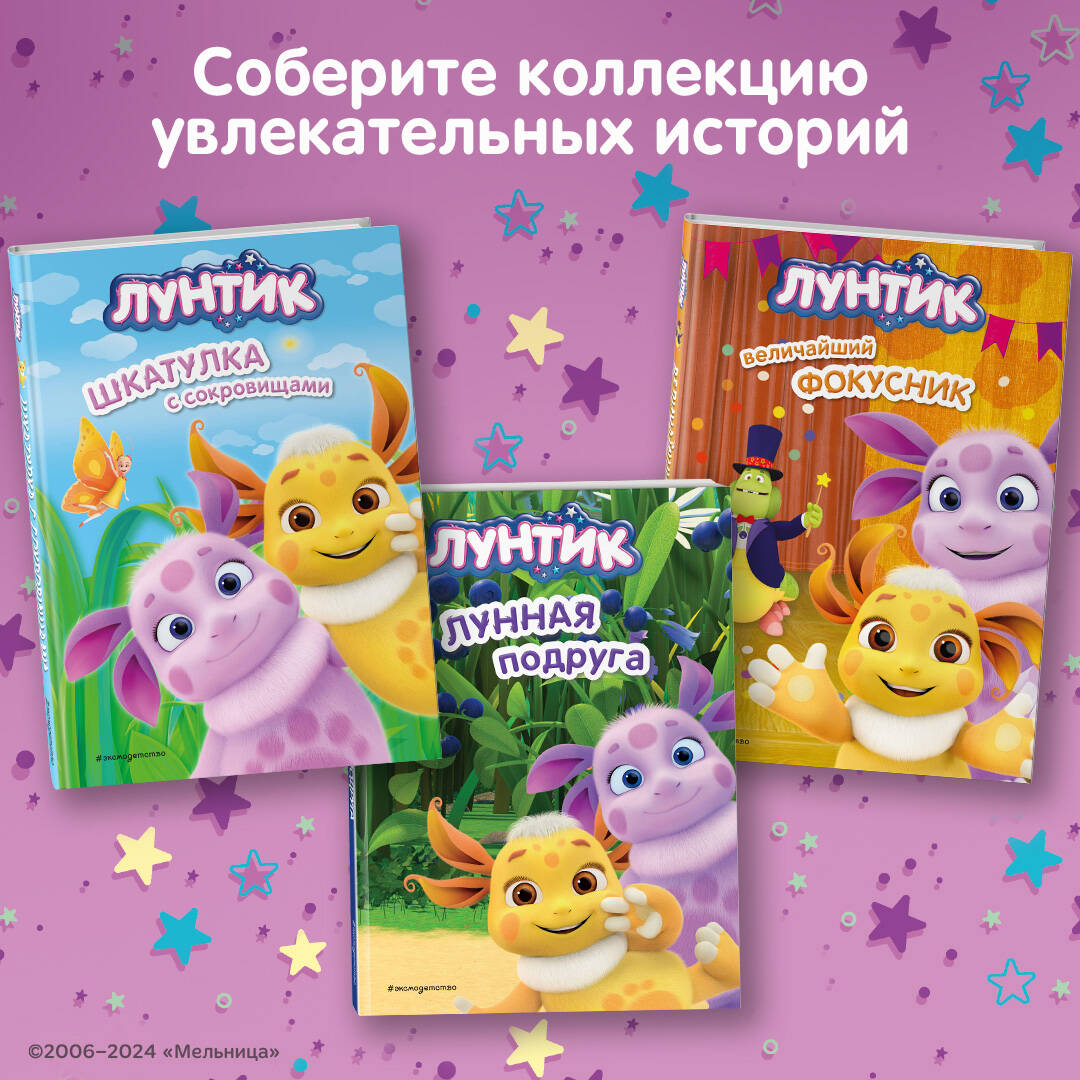 Сборник историй для малышей, таких же любознательных, как Лунтик и его друзья! Увлекательные рассказы о том, как ребята найдут куст редкой лунной ягоды, дедушка Шнюк сделает для внучки чудесный подарок, Вупсень и Пупсень станут настоящими фокусниками, Мила откроет в себе талант танцовщицы, а Луна вновь попадёт в неприятности из-за своего любопытства, подарят маленьким читателям много ярких впечатлений.