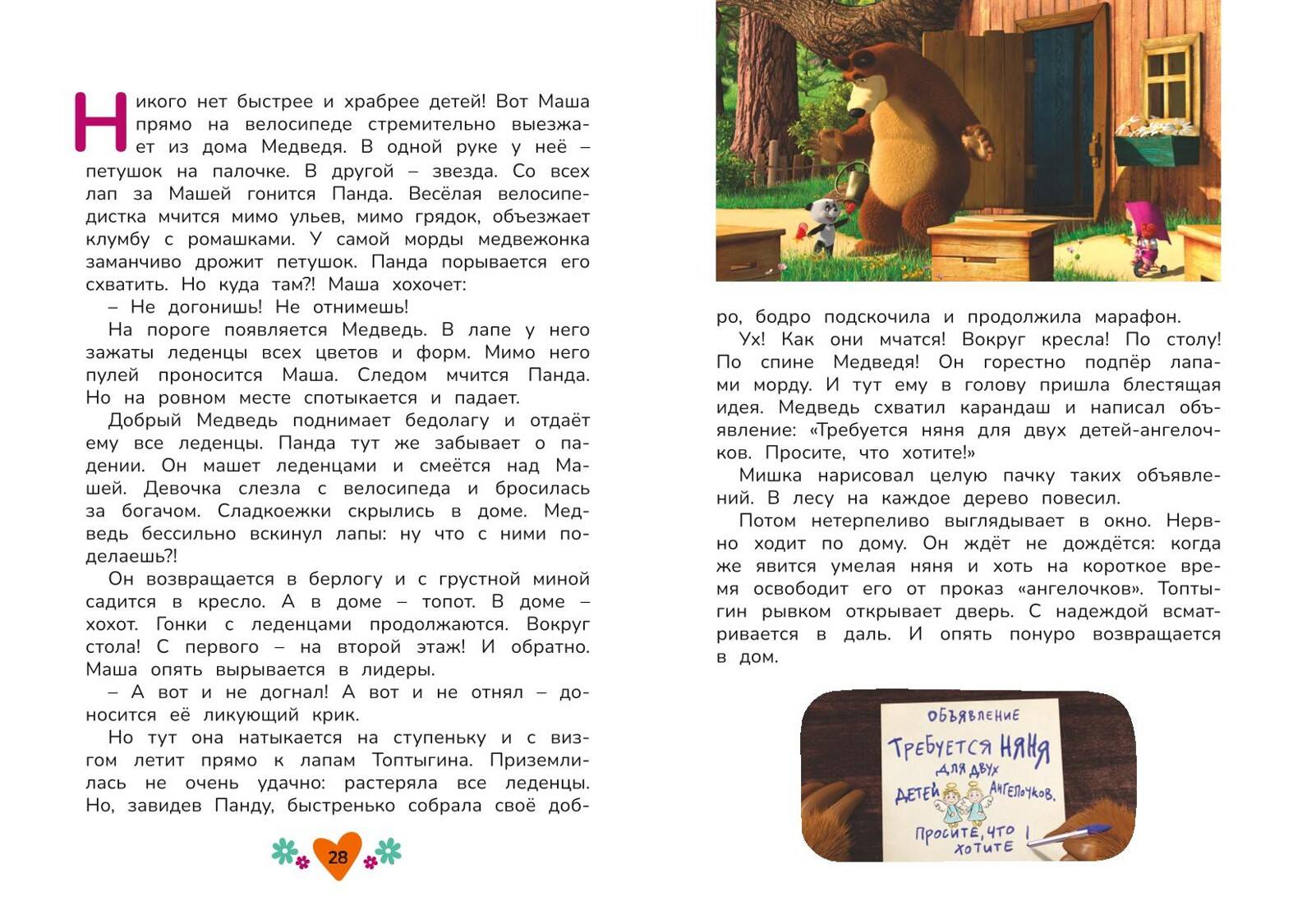 В книге собрано 5 увлекательных рассказов про Машу, Медведя и их друзей. Какую необычную колыбельную придумала Маша? Каким образом девочка и Панда стали героями телеэкрана? И что произойдёт, когда Топтыгин изобретёт машину времени, чтобы увидеть своего предка — пещерного медведя? Чтобы узнать это, читайте весёлые и занимательные рассказы нашего сборника!