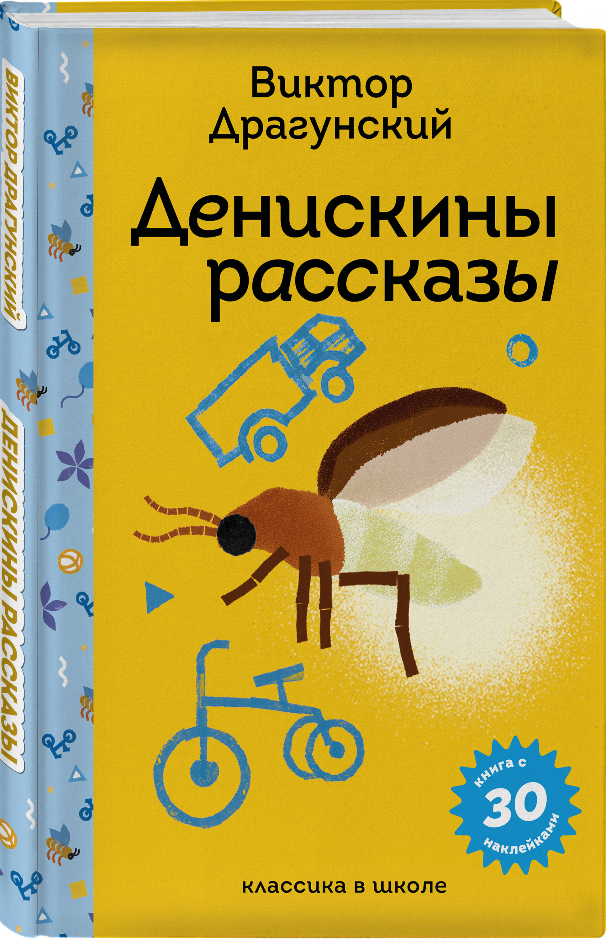 К шопперу-сумочке с названием "Теплым летним вечером" прилагаются две книги для школьников "Денискины рассказы" В. Драгунского и "Самые смешные рассказы о школе" разных авторов. Эти книги чудесные: внутри есть картиночки по возрасту и современному взгляду детей 7--11 лет, есть 30 наклеек, которые можно клеить по всему тексту и так выражать свои эмоции по отношению к книге. Белейшая бумага, крупный отступ между строк, шрифт доступный всем. Книги можно подписать - есть личная страничка, можно прочитать об авторе и получать краткие сведения о произведениях на уроках, а также написать пару строчек о прочитанном, как в читательском дневнике.