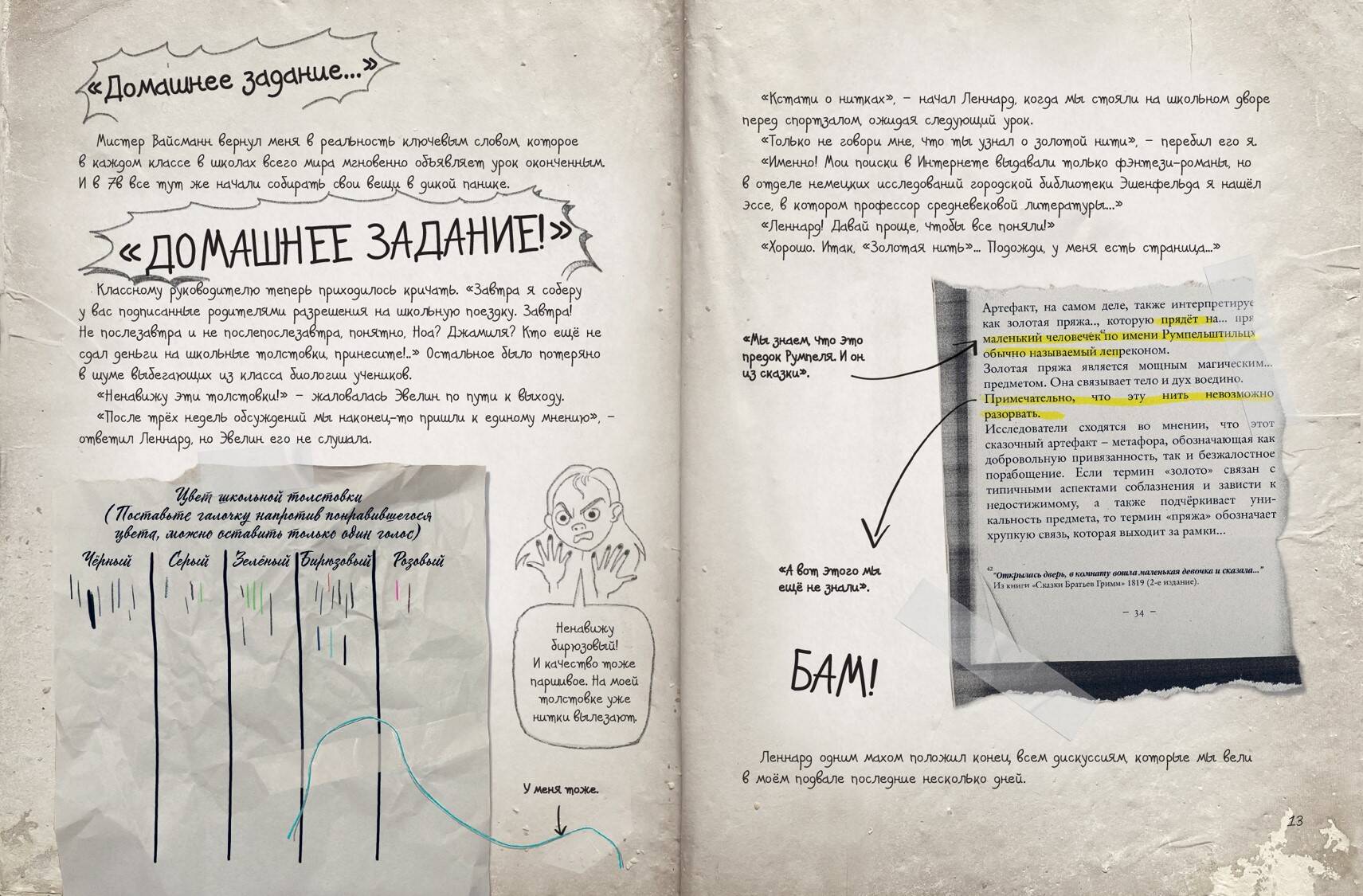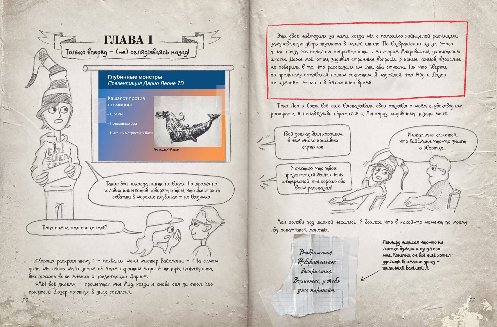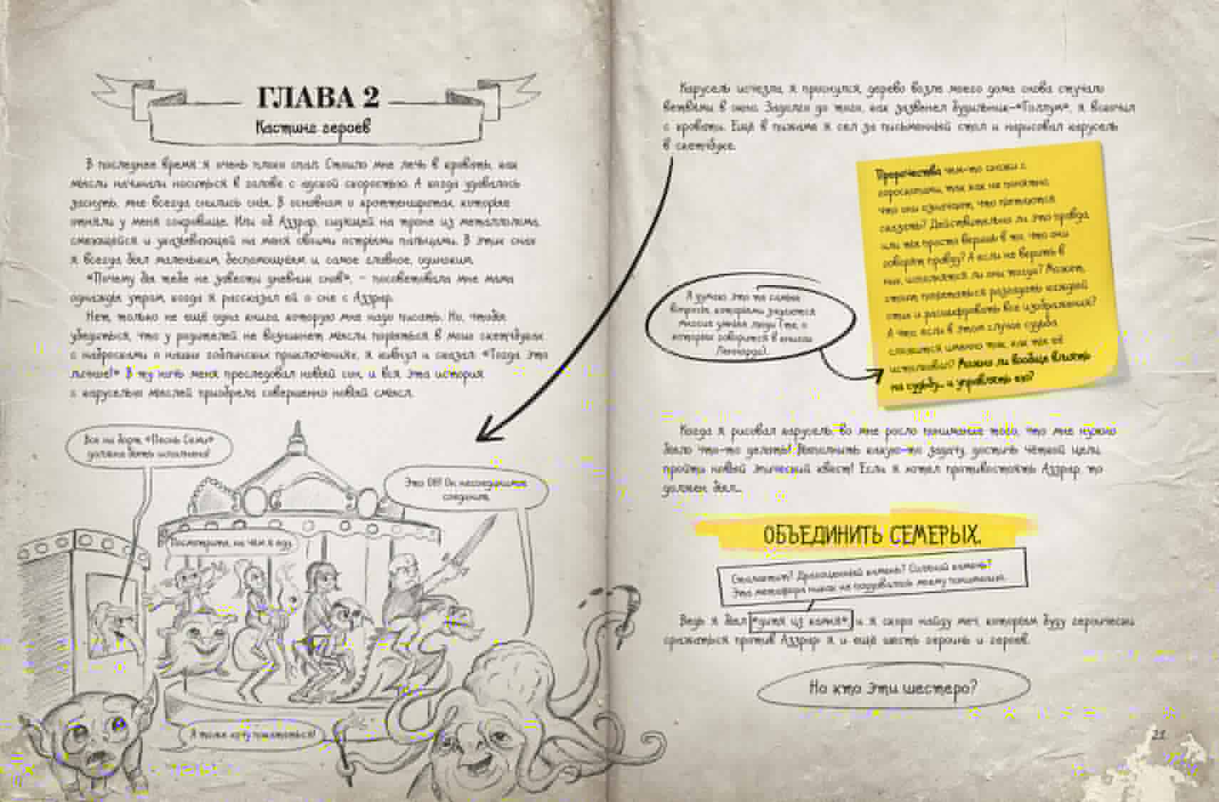 Уникальность книги в необычной подаче — история написана в формате дневника со множеством зарисовок и «доказательств» из приключений главного героя, то есть своего рода дневник-скетчбук. Увлекательный сюжет, сочетающий как художественное повествование, так и комиксовую манеру + сотни стильных иллюстраций = затягивающее чтение, невозможно оторваться!