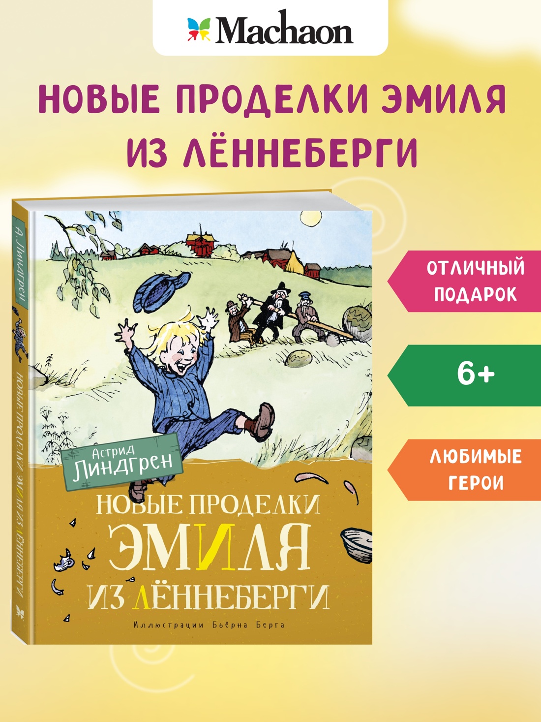 Герой этой весёлой повести Астрид Линдгрен – Эмиль из Лённеберги, от проделок которого трепещет весь хутор. Однажды он так напугал бедных односельчан, что те решили избавиться от сорванца и отправить его в Америку. Они, наивные, полагали, что им сразу станет спокойнее. Собрали в узелок денег и принесли его маме… А что было дальше, вы узнаете, прочитав эту книжку.