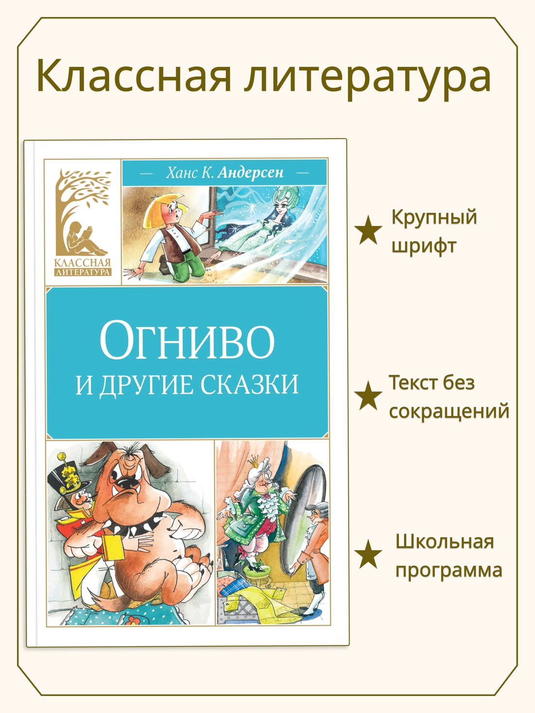 Сказки датского писателя Ханса Кристиана Андерсена читают и любят во всём мире. В книге собраны самые известные из них: «Огниво», «Новое платье короля», «Дюймовочка» и «Снежная королева». В этих светлых, добрых и поучительных историях рассказывается о любви и преданности, смелости и честности, благородстве и самоотверженности, о том, что добро всегда побеждает зло. Откройте для себя волшебный мир великого сказочника!