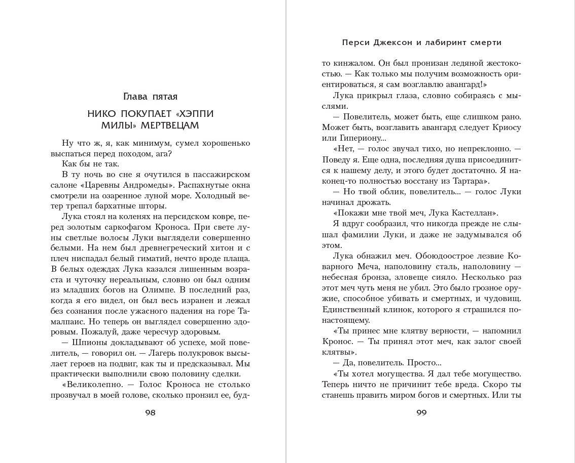 Лука, сын Гермеса и злейший враг Перси, стал верным приспешником титана Кроноса. И теперь ждет, когда его страшный повелитель воскреснет целиком и полностью. Собрав себя заново, Кронос уничтожит лагерь Полукровок. А потом бросит армию на штурм Олимпа… И, чтобы сорвать его планы, нужно совершить подвиг. Аннабет Чейз, Перси Джексон и их друзья направляются в Лабиринт, созданный когда-то Дедалом. Это темное и опасное место, полное тайн и чудовищ. Тот, кто подчинит Лабиринт своей воле, сможет быстро и безопасно перенестись в любую точку пространства. Друзья должны опередить Луку и раскрыть тайну Лабиринта — иначе в предстоящей битве у них не будет шансов на победу.