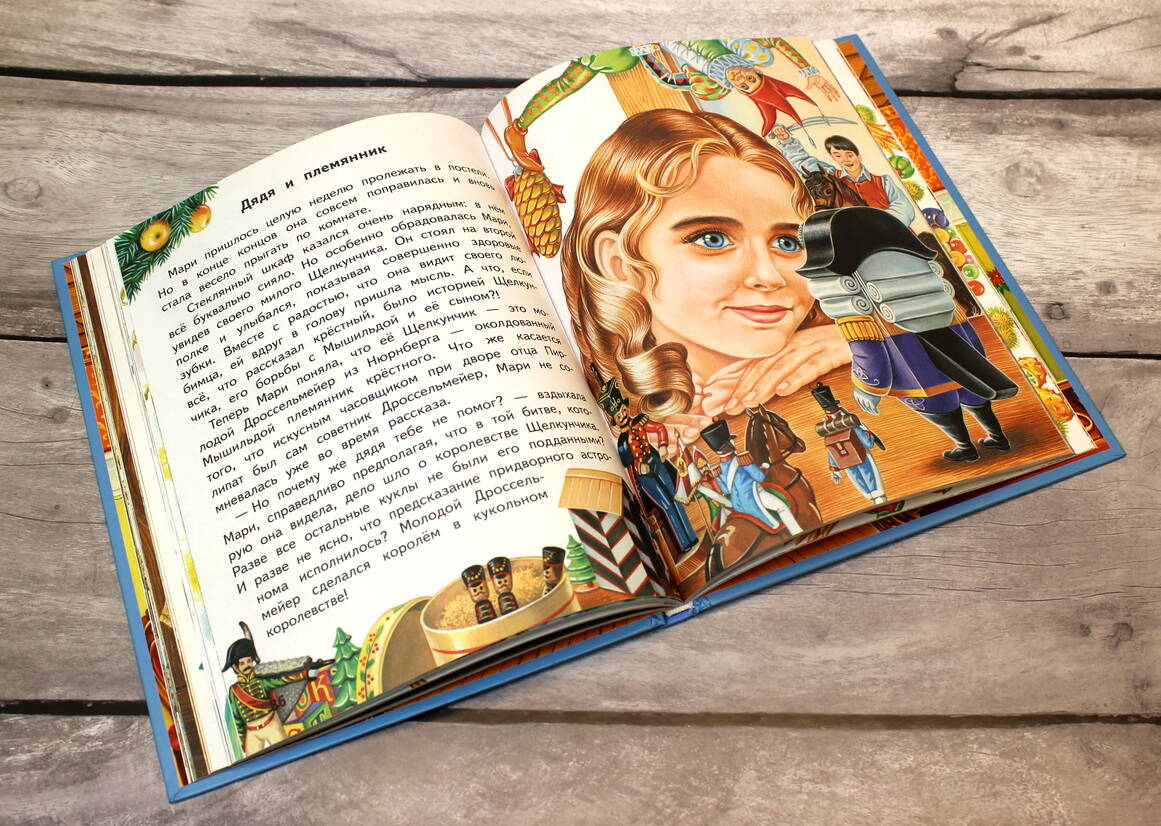 Знаменитая рождественская сказка Э.Т.А. Гофмана «Щелкунчик и Мышиный король» — это прекрасный подарок к Новому году, который можно не только читать, но и рассматривать. Накануне праздника девочка Мари получает в подарок забавную игрушку — Щелкунчика. И в этот же вечер в доме начинают происходить чудеса. Мастер Дроссельмейер расскажет Мари о необыкновенном орехе Кракатуке и раскроет тайну отважного Щелкунчика.
