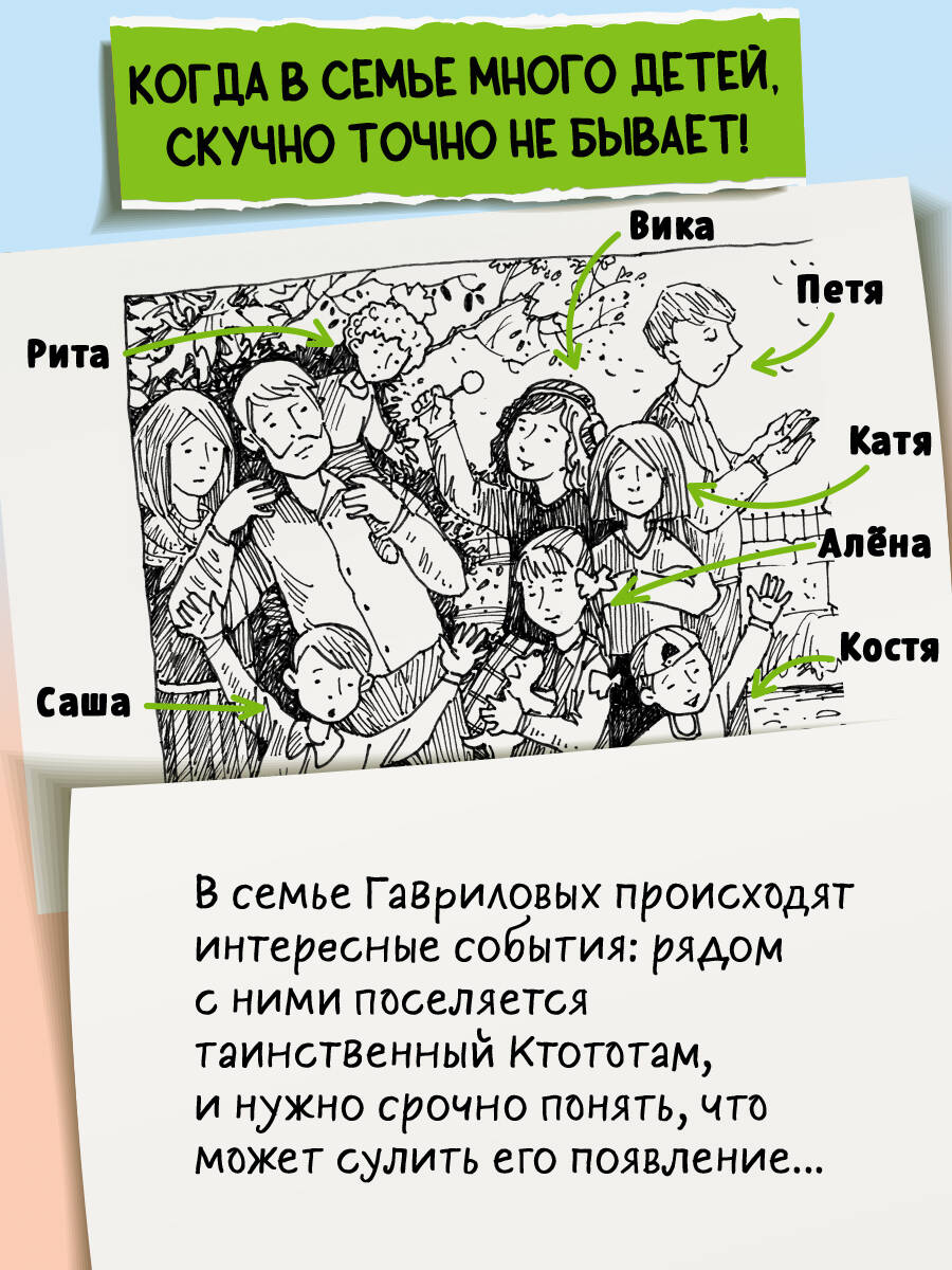 Если вашим соседом становится таинственный Ктототам, то можно смело сказать, что это неспроста. С Ктототамами нужно быть осторожными: вдруг они опасны? Или коварны? Семья Гавриловых остаётся начеку. Тем временем из цирка пропадает тигрёнок, Рита заводит себе бегемофа, Петя катается на Большом Мухе, а вся семья совершает путешествие туда и обратно. Когда у Гавриловых бывает спокойно, спросите вы? Правильно — редко, но от этого только интереснее!