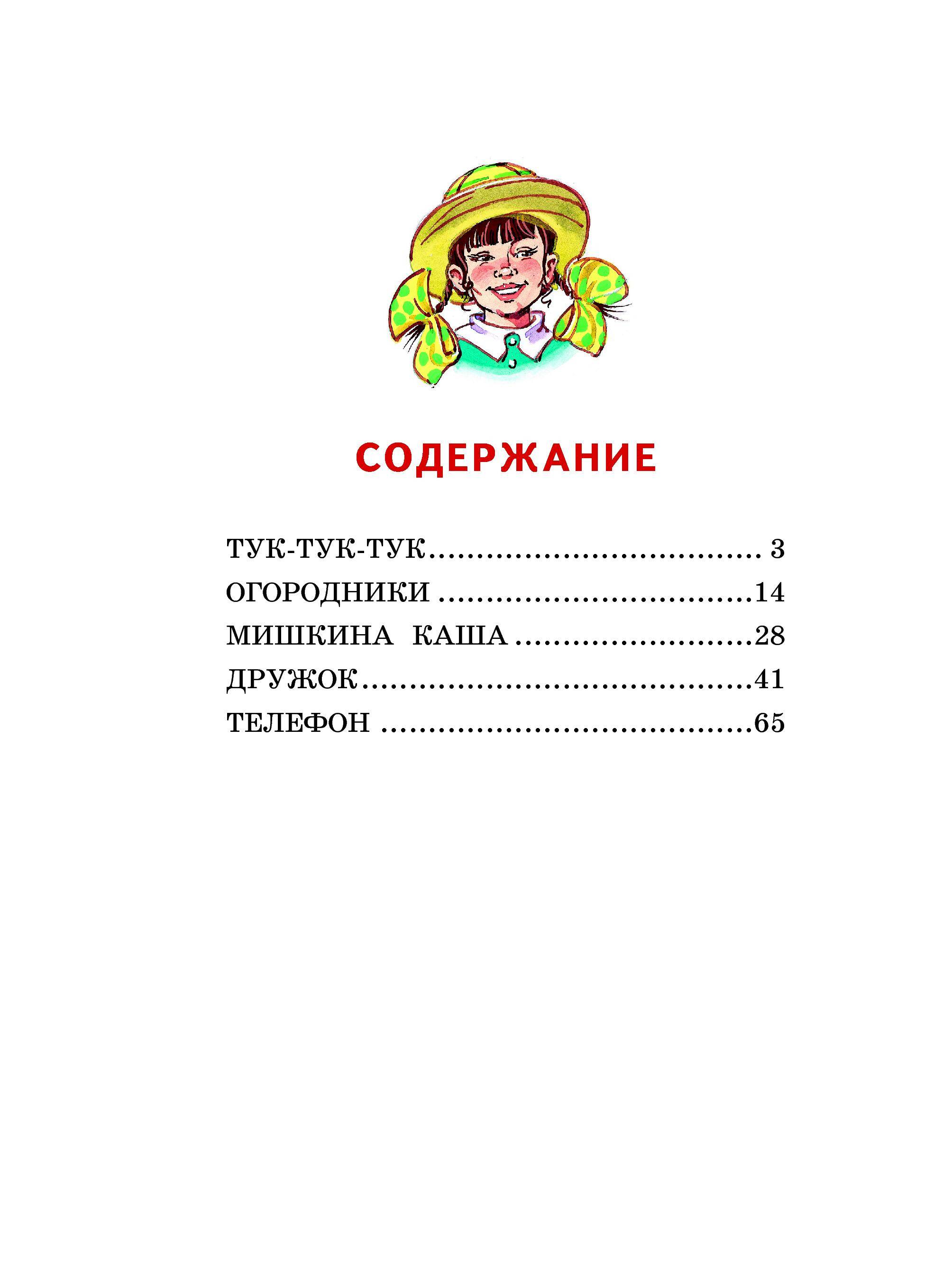 В книгу вошло пять рассказов: «Тук-тук-тук», «Огородники», «Мишкина каша», «Дружок», «Телефон».