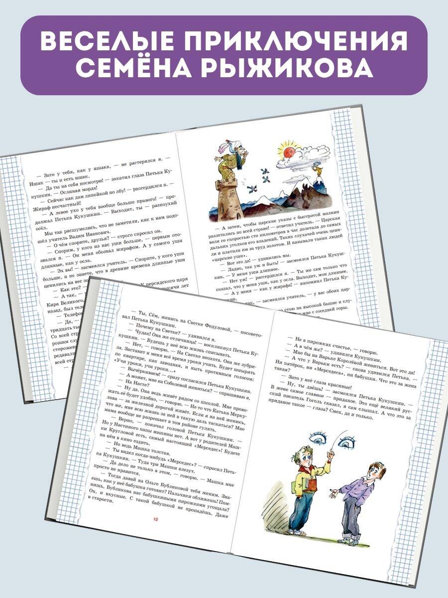 Удобный формат. Твёрдый переплёт с частичным лаком. Плотная белая бумага. Чёткий, удобный для чтения шрифт. Яркие, полноцветные иллюстрации. 36 забавных рассказов о жизни неунывающего двоечника Семёна Рыжикова придумал для ребят самый весёлый современный писатель Валентин Постников.