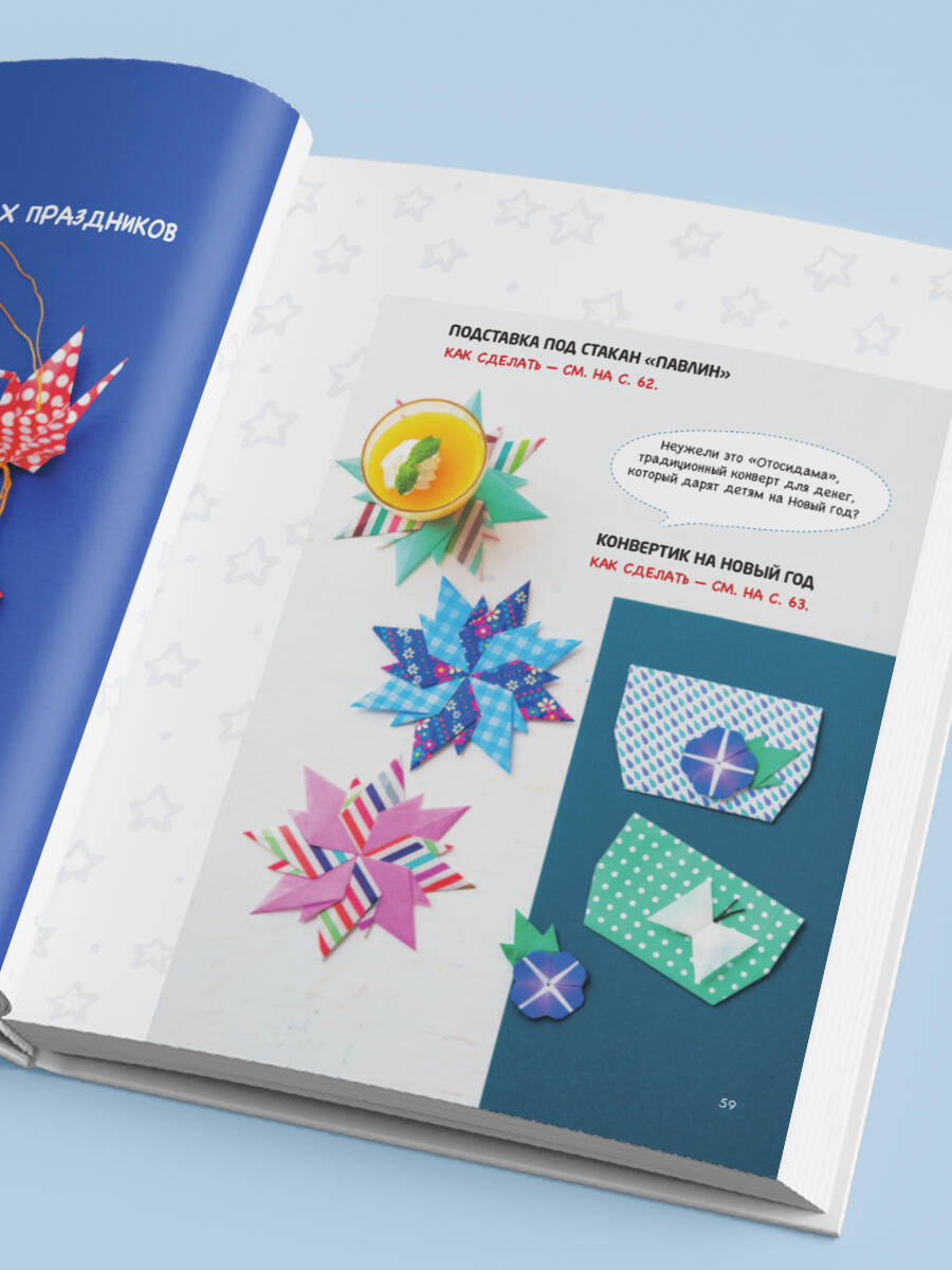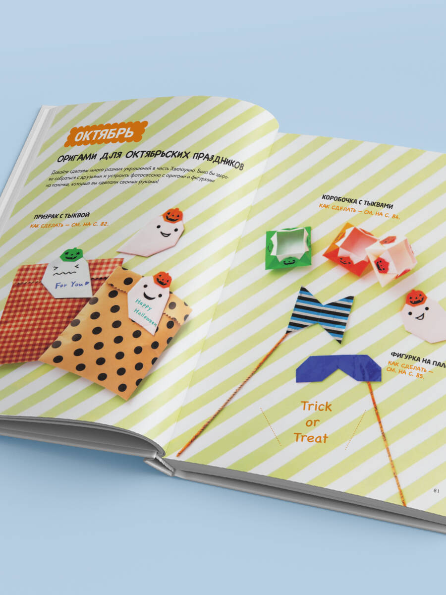 Ваш ребенок откроет волшебный мир оригами, в котором каждое время года приносит новые идеи для творчества! По пошаговым мастер-классам вы сложите из бумаги более 60 удивительных декораций и подарков, которые будут радовать каждый день. Все разделы посвящены 12 месяцам, каждый из которых добавит яркости семейным праздникам и поможет провести их весело, складывая оригами. Ваш ребенок научится складывать не только простые 2D-оригами, но и объемные и даже модульные фигуры! А если объединить несколько фигурок, вы получите уникальные венки со сказочными мотивами, забавными персонажами и сюжетами.