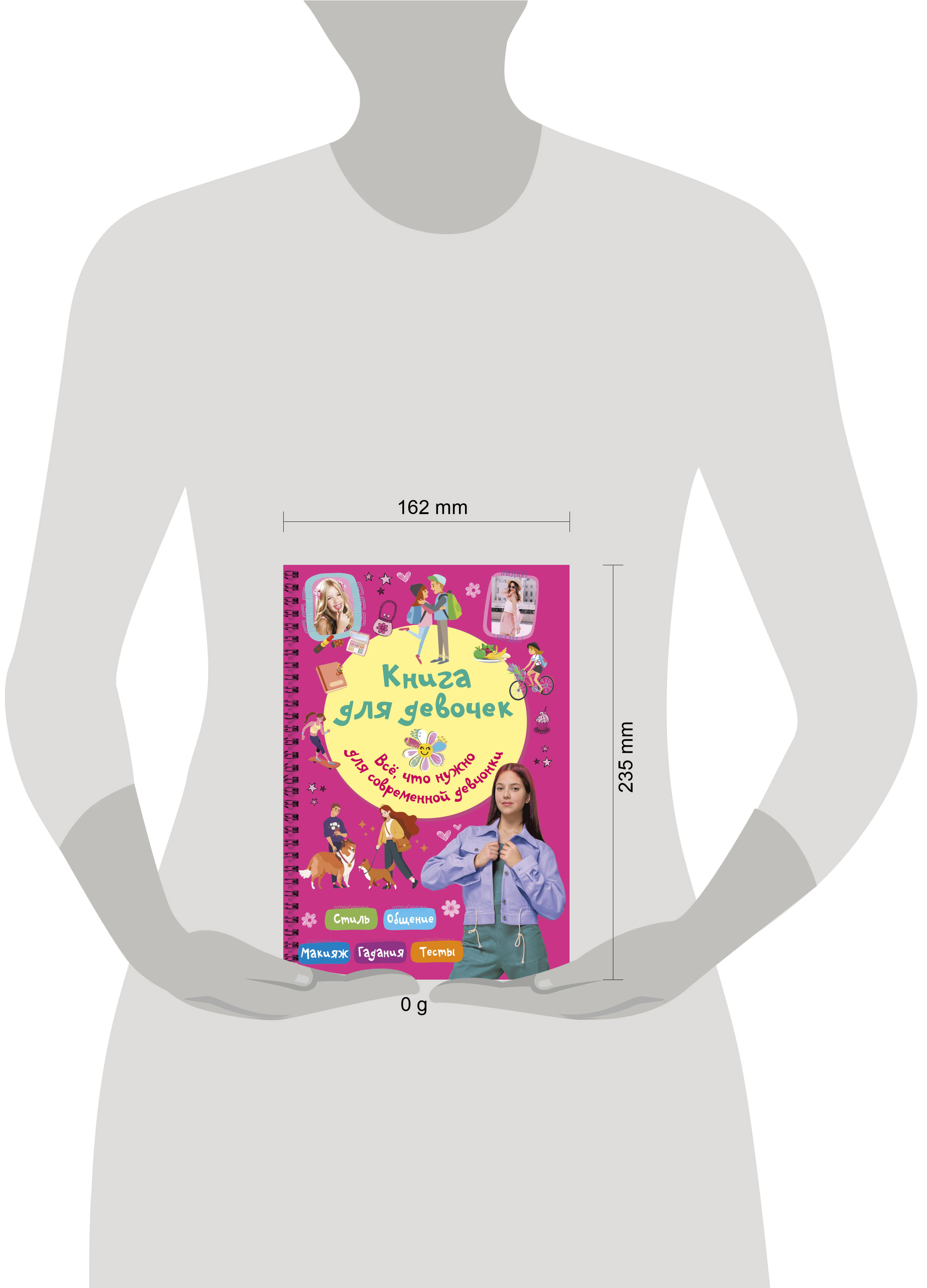 "Книга для девочек. Всё, что нужно для современной девчонки" создана специально для подростков 10-13 лет и содержит разделы о красоте и стиле, общении, лидерских качествах, диалоге с родителями, питании, гигиене, финансовой грамотности, безопасности в интернете и многом-многом другом. Книга удобна и практична — благодаря спирали страницы легко перекидываются из стороны в сторону, открываясь на 360 градусов.