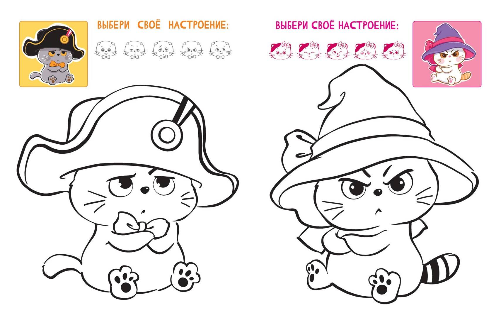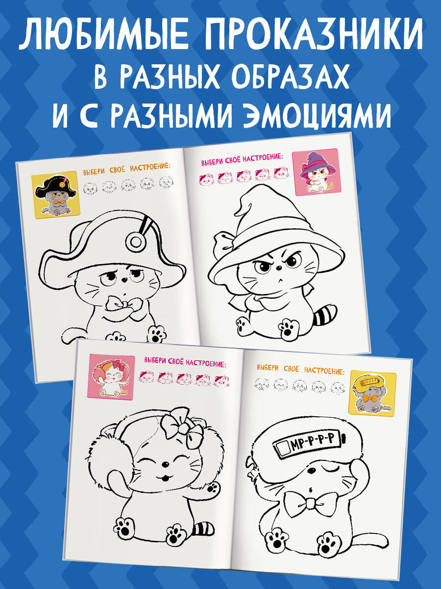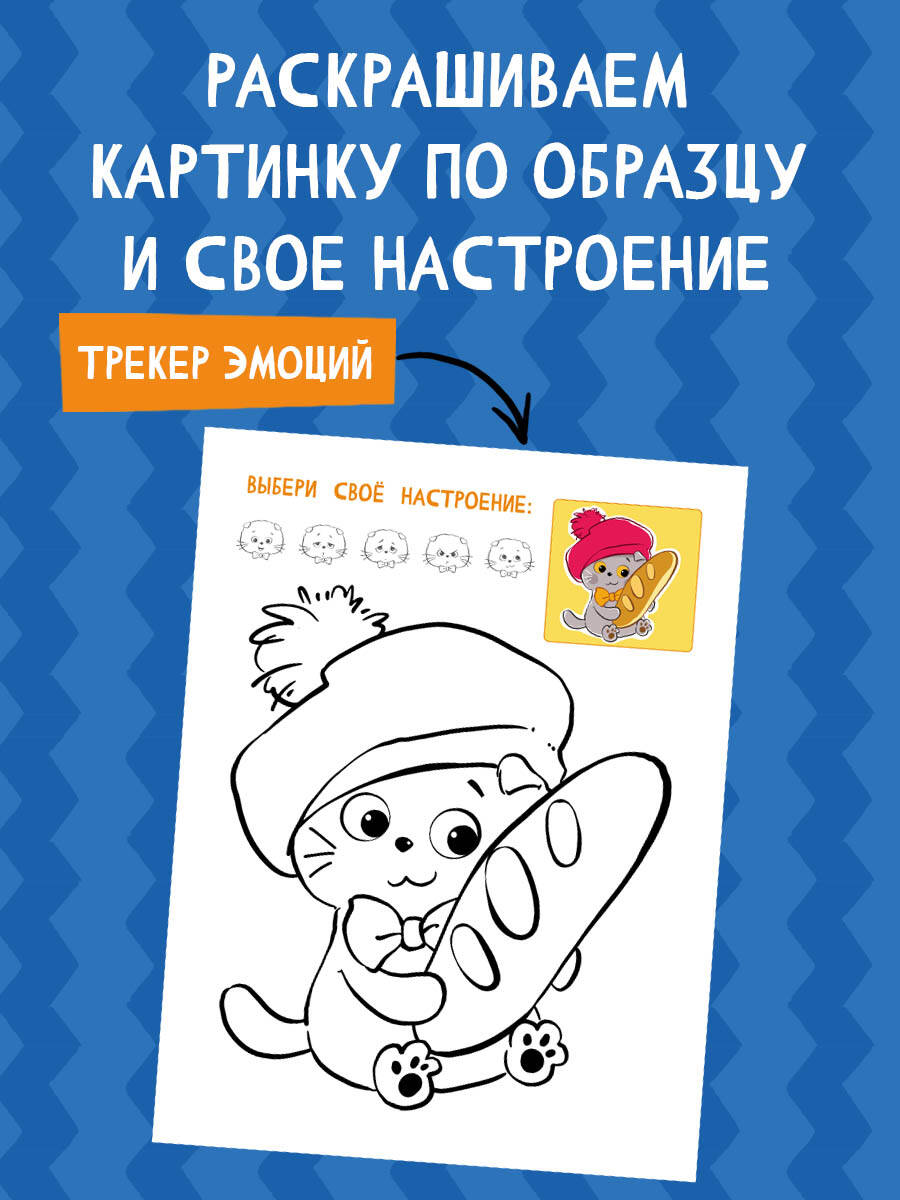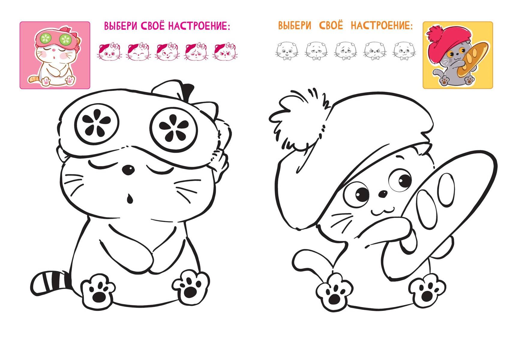 Рядом с каждым рисунком есть дополнительные элементы для раскрашивания — трекер настроения, где ты можешь раскрасить свою эмоцию!