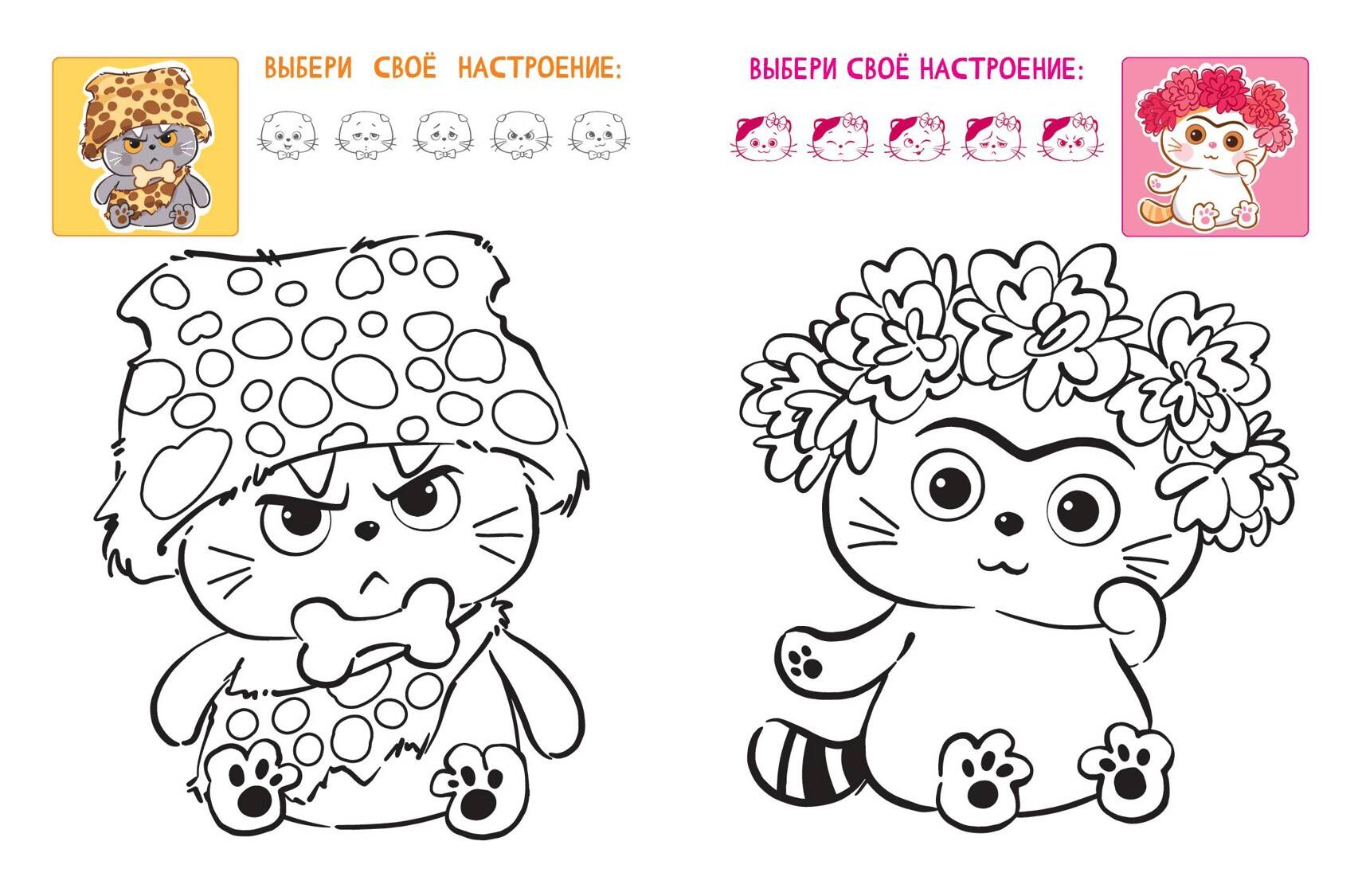 Раскрашивай по образцу очаровательные иллюстрации с пушистыми героями и заполняй страницы яркими красками.