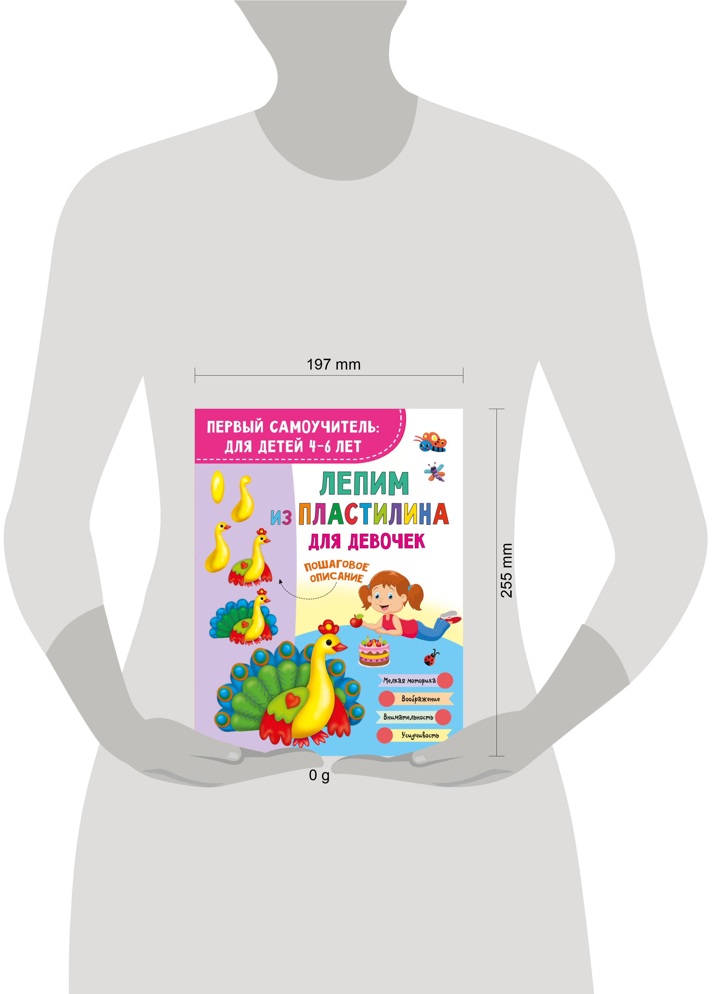 "Лепим из пластилина для девочек" — самоучитель с понятными пошаговыми инструкциями и яркими наглядными иллюстрациями. Великолепные поделки собираются из простых базовых фигур: шариков, колбасок, полосок, валиков. Малышка научится лепить цветы и ягоды, конфеты и печенье, принцесс и фей, различных животных и многое другое.