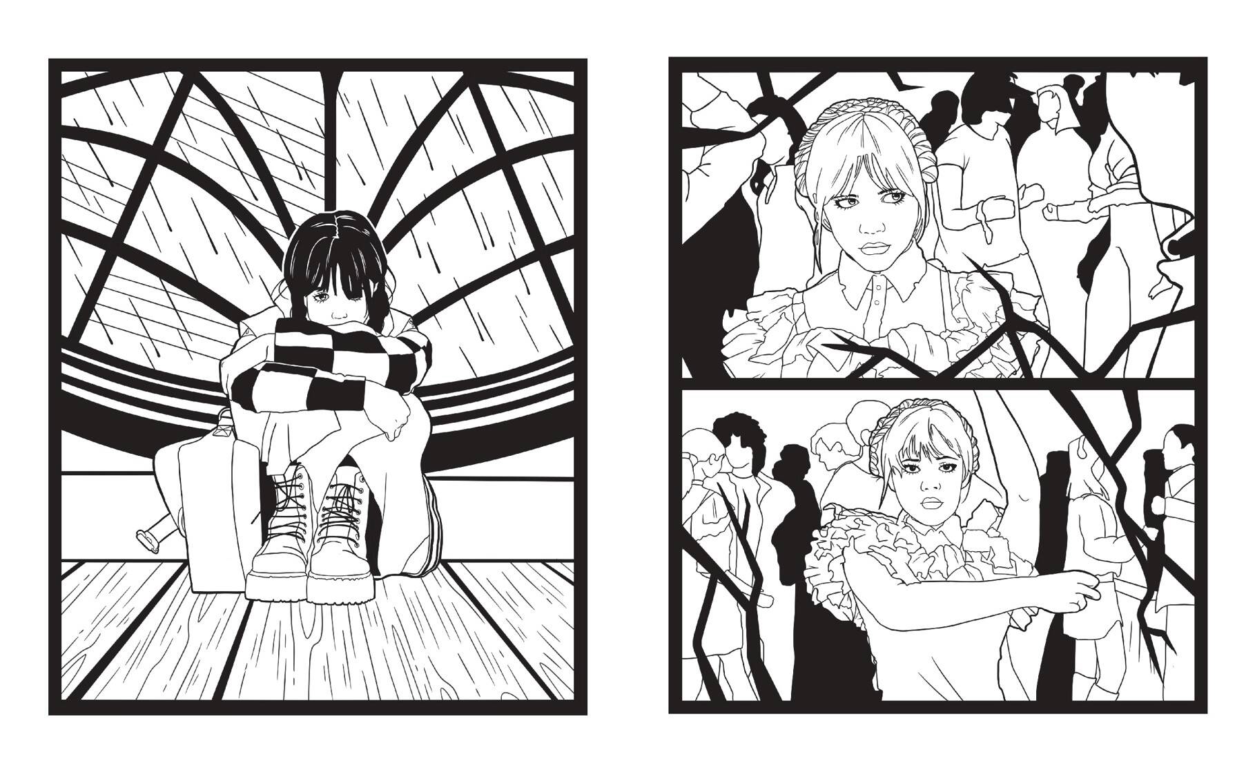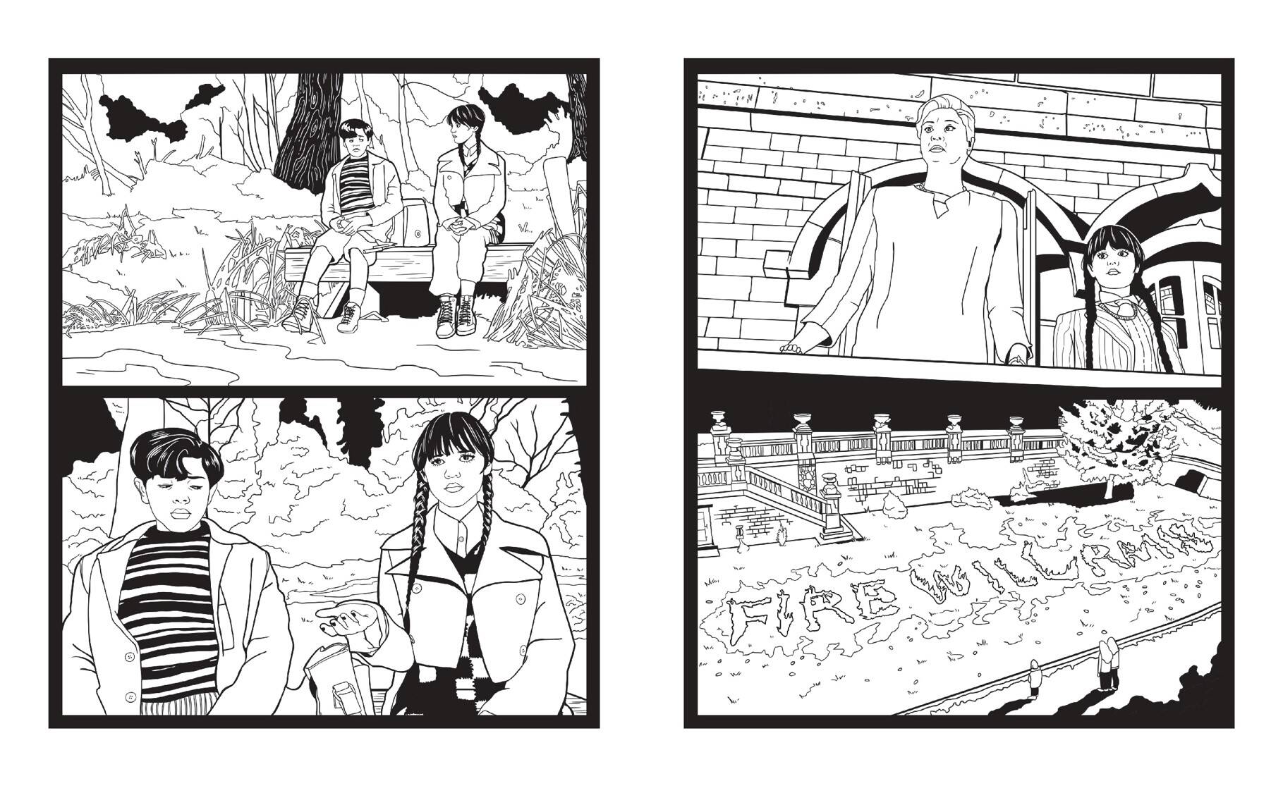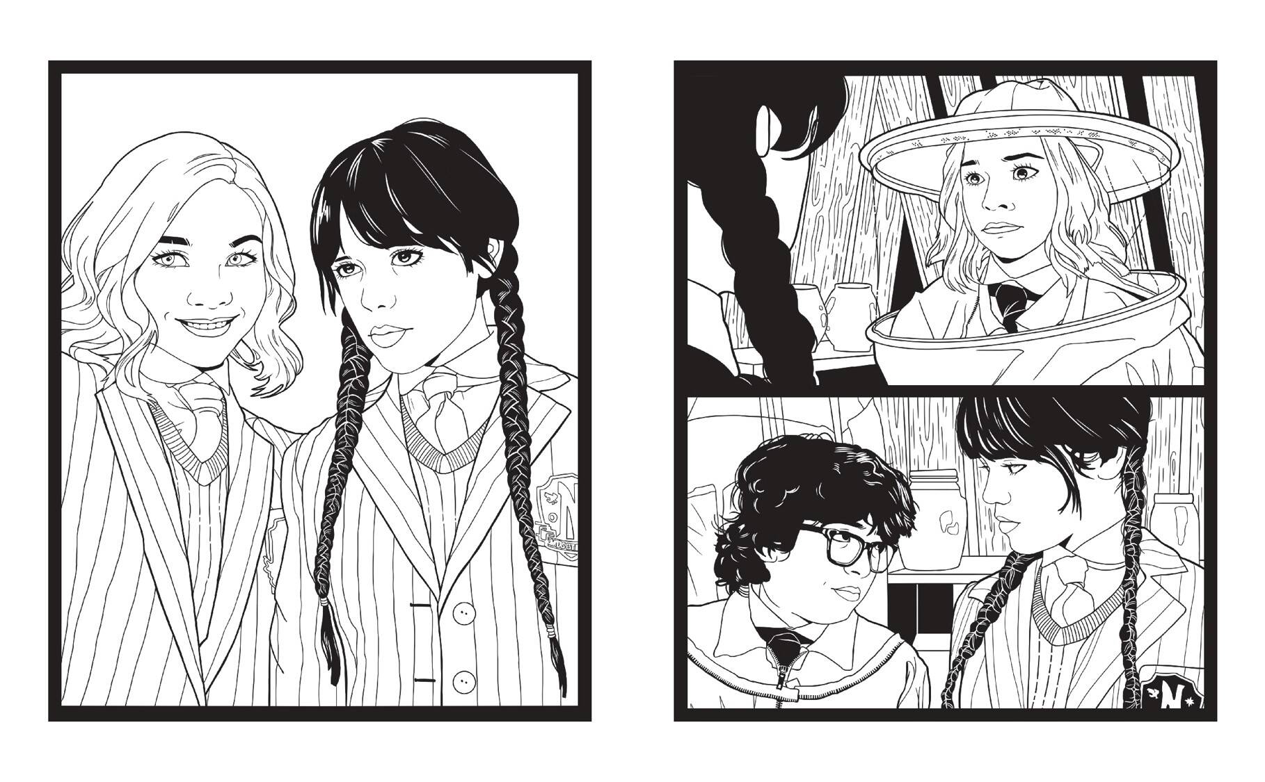 Уникальная раскраска по одному из самых популярных подростковых сериалов «Уэнсдей». Познакомься с самой готической девочкой в мире! Вместе с главной героиней загляни в тайные и мрачные уголки академии Невермор и раскрась крутые иллюстрации, отсылающие к самым известным эпизодам истории. Не бойся быть креативным! Ты можешь использовать темные оттенки или, наоборот, сделать сумрачный мир Уэнсдей ярче — все в твоих руках! Почувствуй себя настоящим режиссером и реши, каким будет твой любимый сериал.