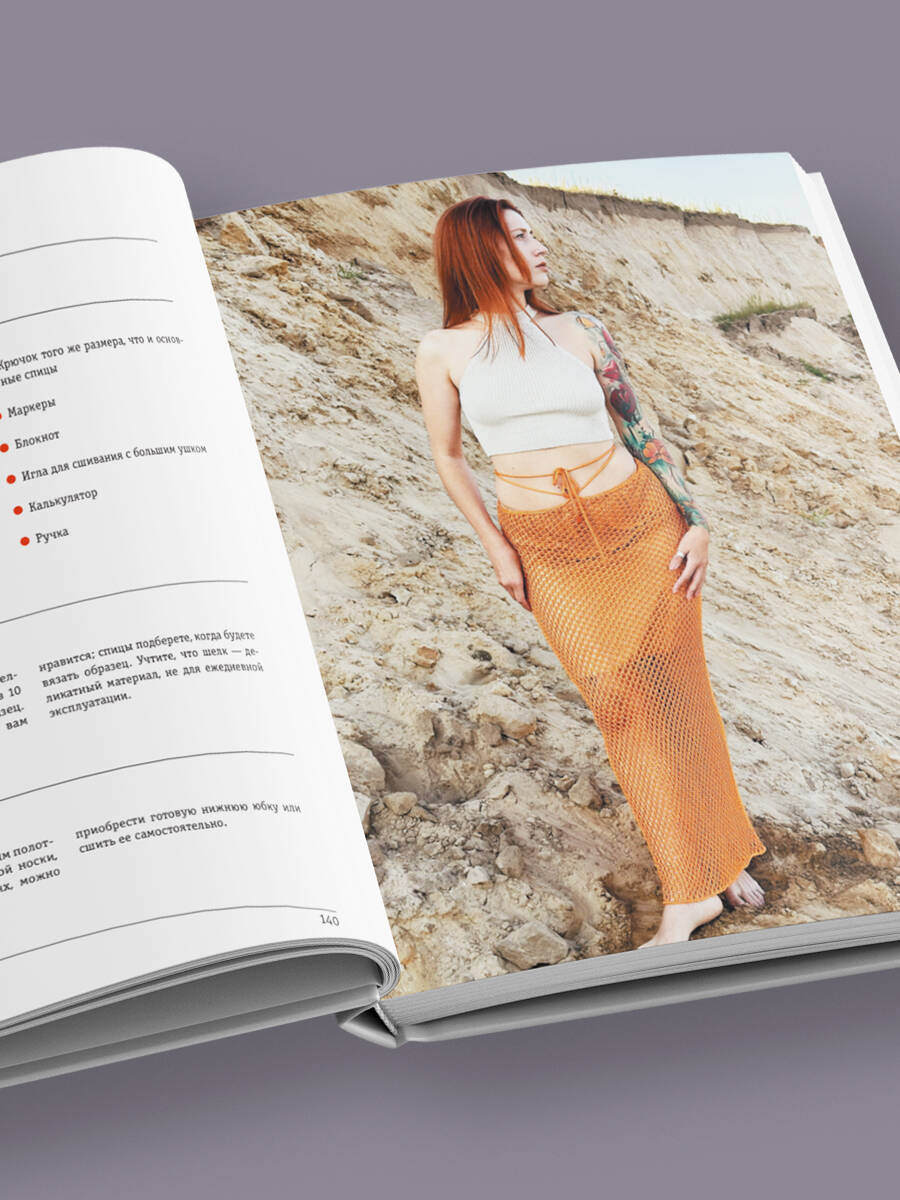 «Вязание ниже пояса» — это первая авторская система бесшовного кругового вязания юбок, шорт, лосин и комбинезонов, словом, любых поясных изделий, как нарядных, так и повседневных, по индивидуальным меркам.