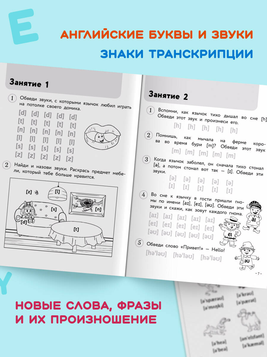 И материал, и задания даны от простого к сложному. Ребенок не испытает страха или стресса от знакомства с иностранным языком, поверит в свои силы и заложит отличную базу для успехов в английском в школе!