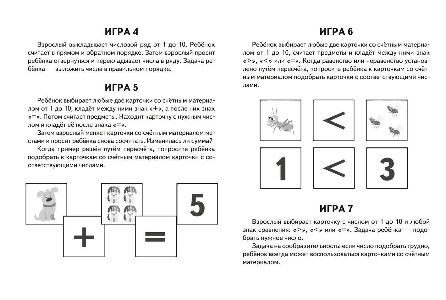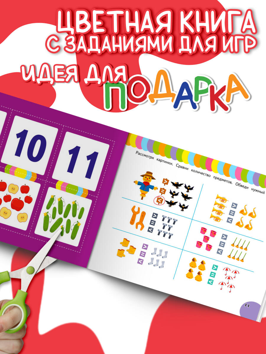 Карточки для развивающих игр — это эффективный инструмент, который поможет ребёнку научиться считать до двадцати, освоить арифметические действия сложения, вычитания, сравнения и сделать первые шаги к пониманию математики. Играть с обучающими карточками очень весело и увлекательно! Они подходят как для занятий дома, так и в детском саду. Набор карточек с цифрами представляет собой 24 картонных листа, каждый из которых ребёнок самостоятельно может разрезать на 6 частей. И у него будет 144 цветные карточки для счета. В наборе есть брошюра-раскладушка с подробными методическими рекомендациями, которые помогут взрослым правильно организовать обучающие игры, и цветная книга с заданиями. Занимаясь по ней, ребёнок сможет закрепить изученный материал. Упражнения из книги можно рассматривать в качестве тестовых заданий для контроля полученных знаний и навыков. Играя с детскими развивающими карточками, рассматривая яркие картинки, дети 3-4-5-6 лет быстро и легко научатся определять количественное наполнение чисел, считать, решать примеры на сложение и вычитание, несложные задачи, разовьют математическое мышление. Карточки прекрасно оформлены и станут отличным подарком мальчикам и девочкам к любому празднику.