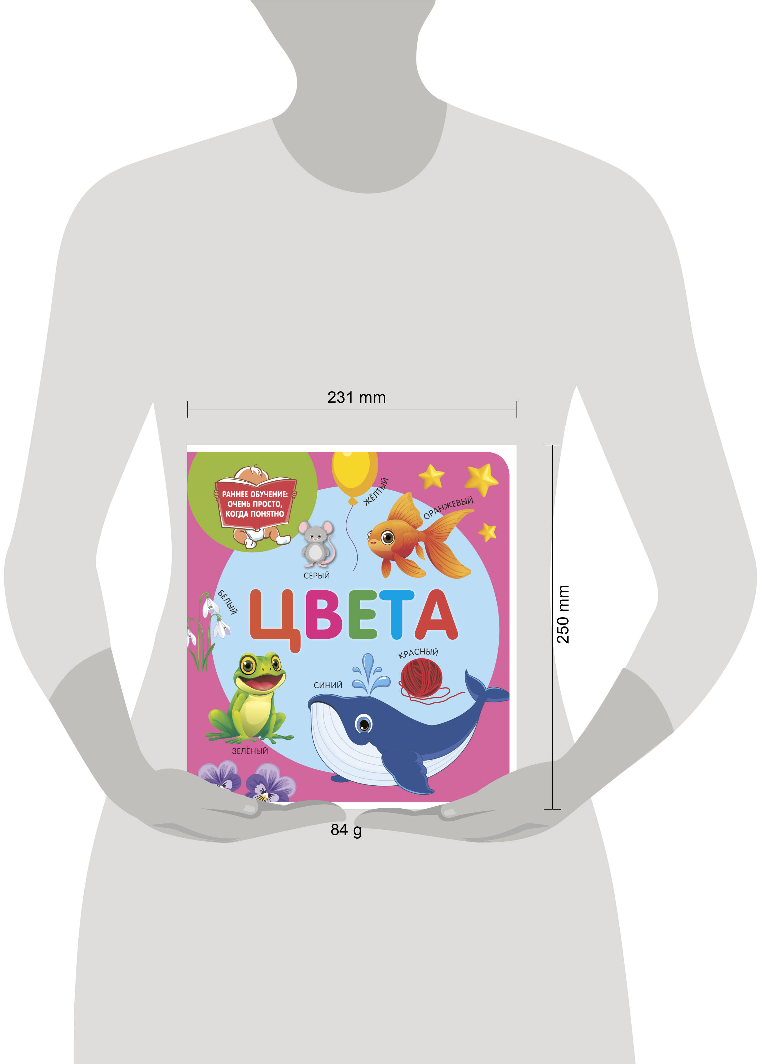 Яркая развивающая книга для самых маленьких "Цвета" легко и весело познакомит ребёнка с основными цветами, а заодно поможет выучить первые слова. В книжке малыши увидят красный помидор, оранжевую морковь, жёлтого утёнка и другие картинки. Красочные иллюстрации, простые образы и чёткая визуальная связь между цветом и предметом способствуют развитию внимания, мышления и речи. А качественная мелованная бумага и закруглённые углы страниц делают книгу прочной и безопасной — она не порвётся и не помнётся, а ребёнок не порежется!