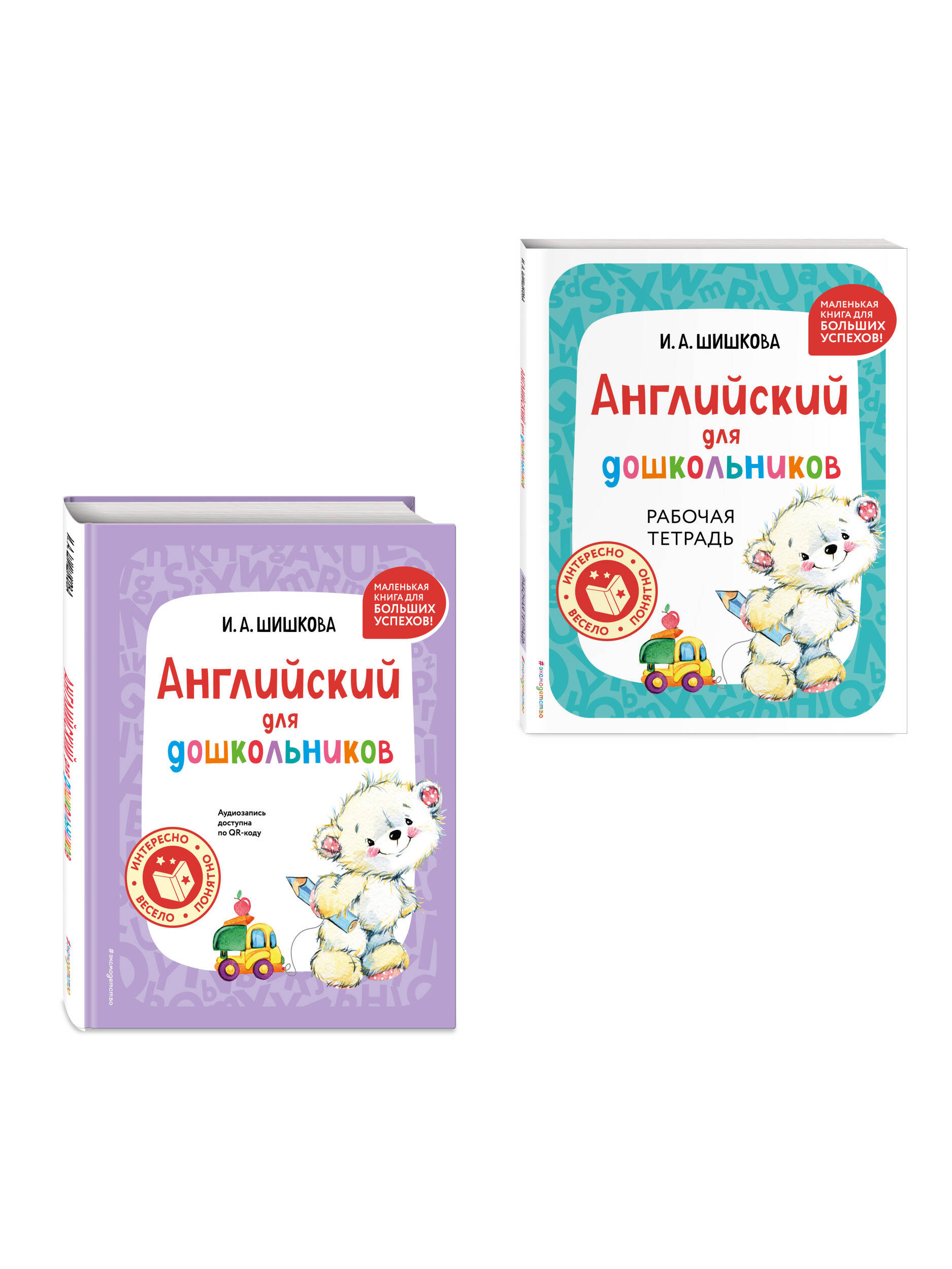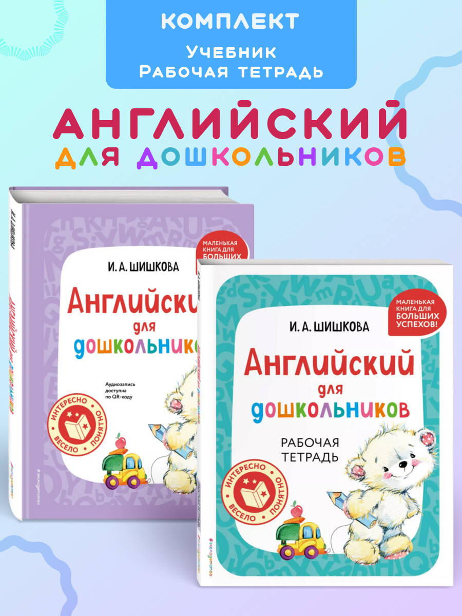 В комплект по английскому языку автора И. А. Шишковой входят книги «Английский для дошкольников (+ аудиозапись по QR-коду)» и «Английский для дошкольников. Рабочая тетрадь».
