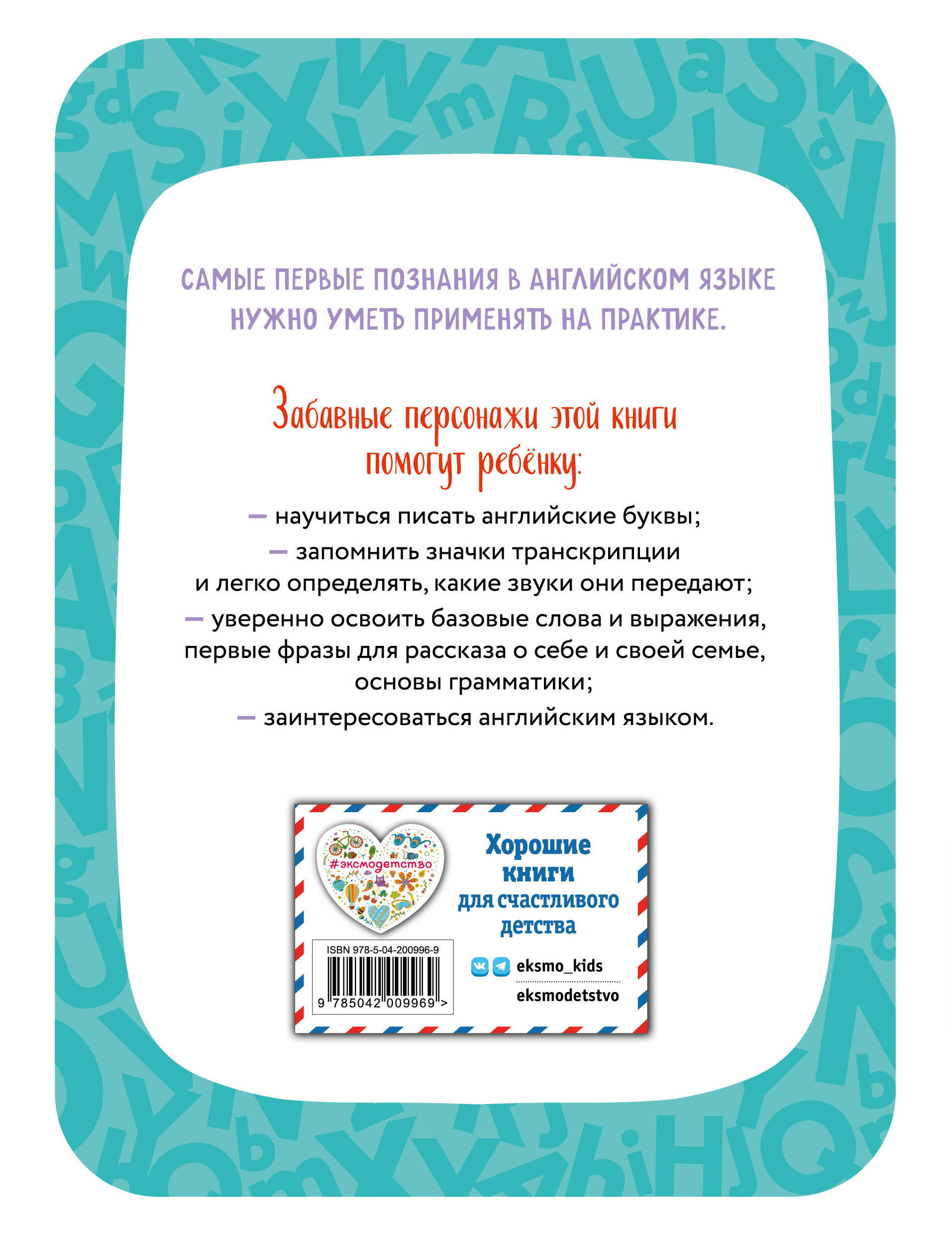 Рабочая тетрадь в новом мини-формате поможет отработать материал пособия и вместе с персонажами научиться узнавать английские буквы и значки транскрипции, повторить знакомые слова.