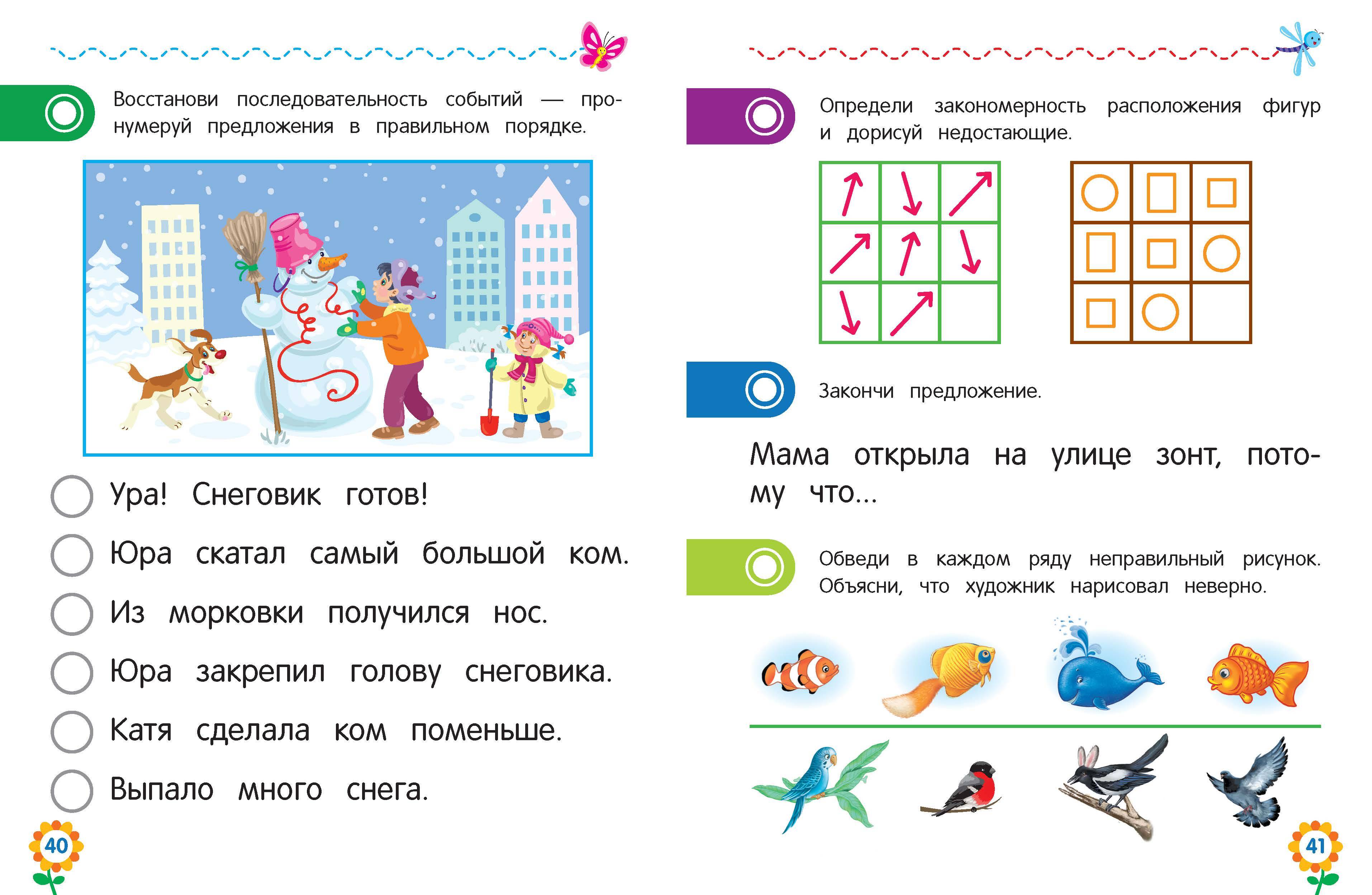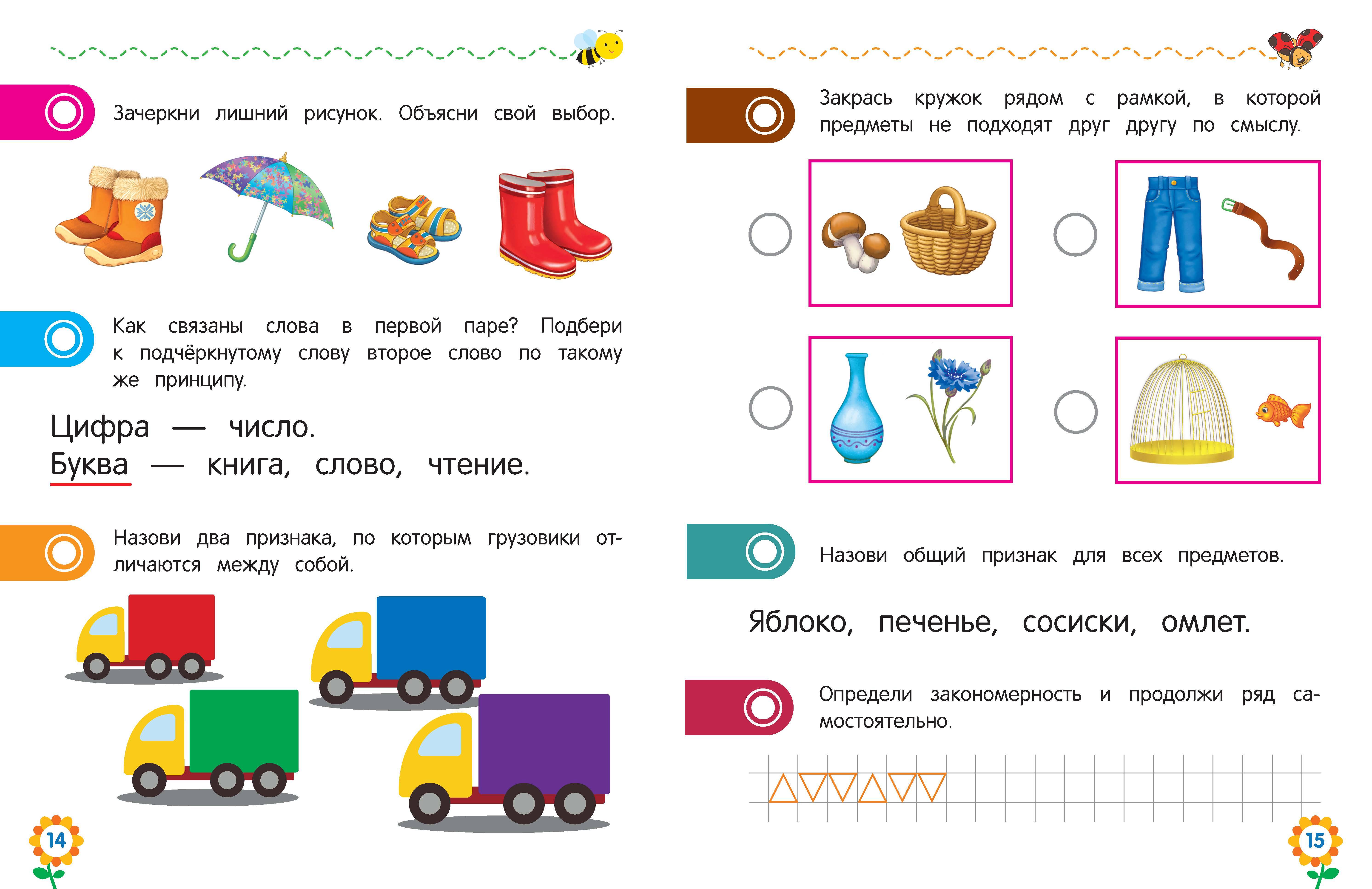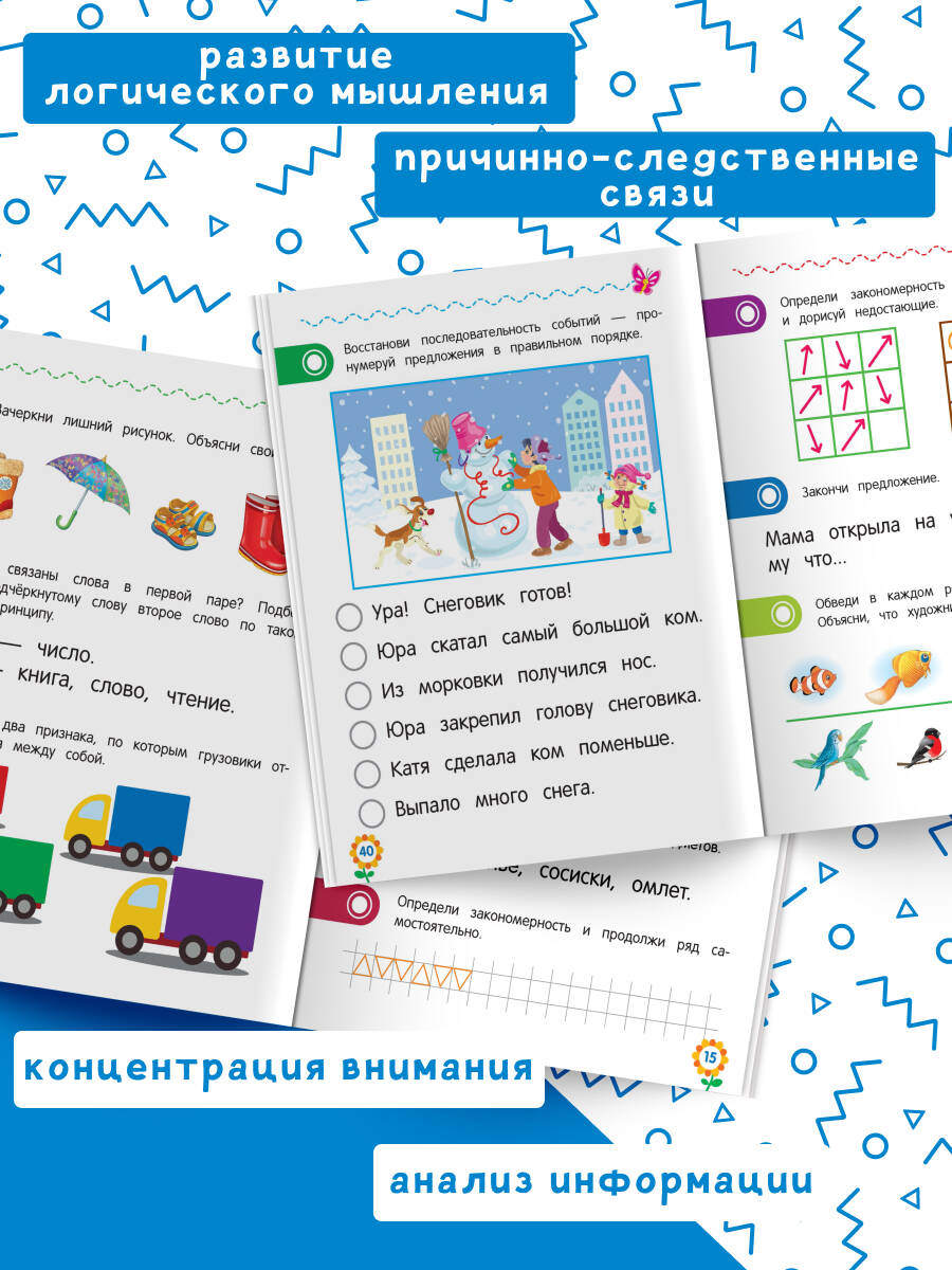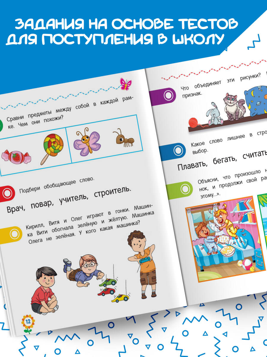 Поступление в 1-й класс — важнейший этап в жизни ребёнка, и к нему нужно хорошо подготовиться. Тренажёр включает в себя задания разного типа на проверку степени усвоения базовых умений и навыков, необходимых для дальнейшего обучения. С помощью пособия можно проверить уровень развития логического мышления будущего первоклассника: умеет ли он устанавливать последовательности и закономерности, подбирать обобщающие слова, сравнивать и группировать предметы по определённым признакам, продолжать логические ряды, определять, что неправильно нарисовал художник. Задания, представленные в тренажёре, помогут оценить способности ребёнка, определить, с чем он справляется успешно, и выделить те области, которые вызывают у него затруднения. Книга-развивашка от издательства «Эксмо» будет полезна девочкам и мальчикам 5, 6, 7 лет для подготовки к школе. Рекомендуем также приобрести пособия: «Чтение», «Графические навыки», «Первая математика», «Внимание и память».