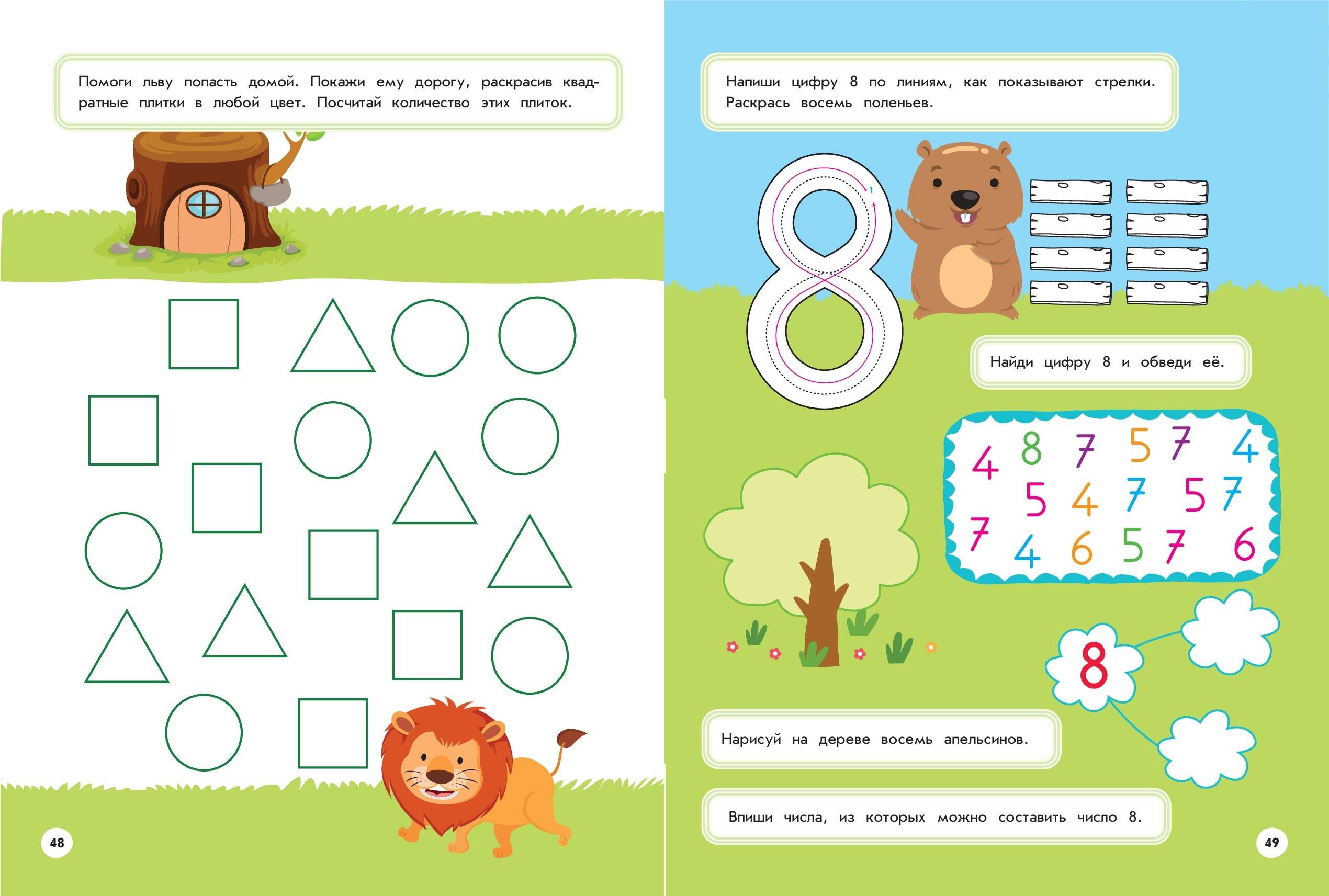 Красочные иллюстрации, забавные персонажи и неожиданные сюжеты заданий будут поддерживать интерес ребёнка к азам математики.