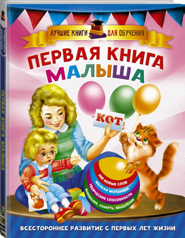 "Первая книга малыша" — это пособие для регулярных занятий, которые помогут ребёнку развить внимание, память, мышление, мелкую моторику и координацию движений. Малыш выучит 200 новых слов, потренирует пальчики, познакомится со сказками и узнает много нового об окружающем мире.