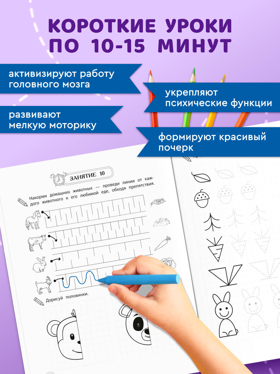 Нейропрописи включают в себя графические задания, способствующие развитию межполушарных связей и мелкой моторики. Методика, использованная в пособии, учитывает нейропсихологические методы обучения и гарантирует высокий результат. Все задания доступны и разнообразны, что позволит дошкольнику менять виды деятельности и не уставать. Пособие имеет очень четкую структуру: в одном занятии имеются задания, направленные на развитие навыков пространственной ориентации на листе бумаги и на клетчатом поле. Занимательные картинки, увлекательные задания на раскрашивание, дорисовывание и рисование по точкам, штриховку, прохождение лабиринтов, обведение линий по пунктиру двумя руками одновременно активизируют мозговую деятельность, помогут укрепить пальчики дошкольника, будут способствовать развитию координации руки и глаз, и, следовательно — профилактике дисграфии. Кроме того, занимаясь, ребенок сможет потренировать моторную память и произвольное внимание, станет более усидчивым и аккуратным.