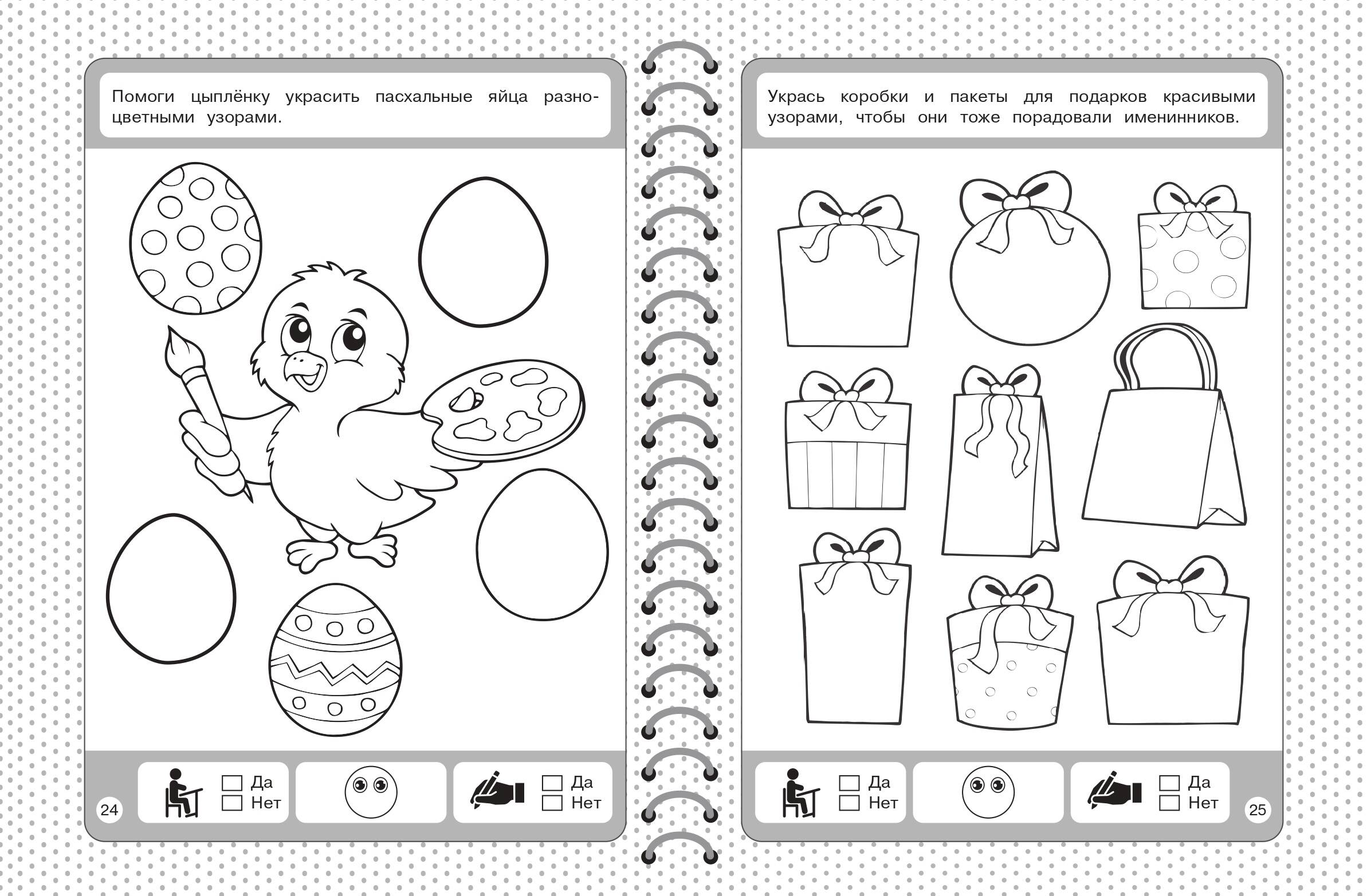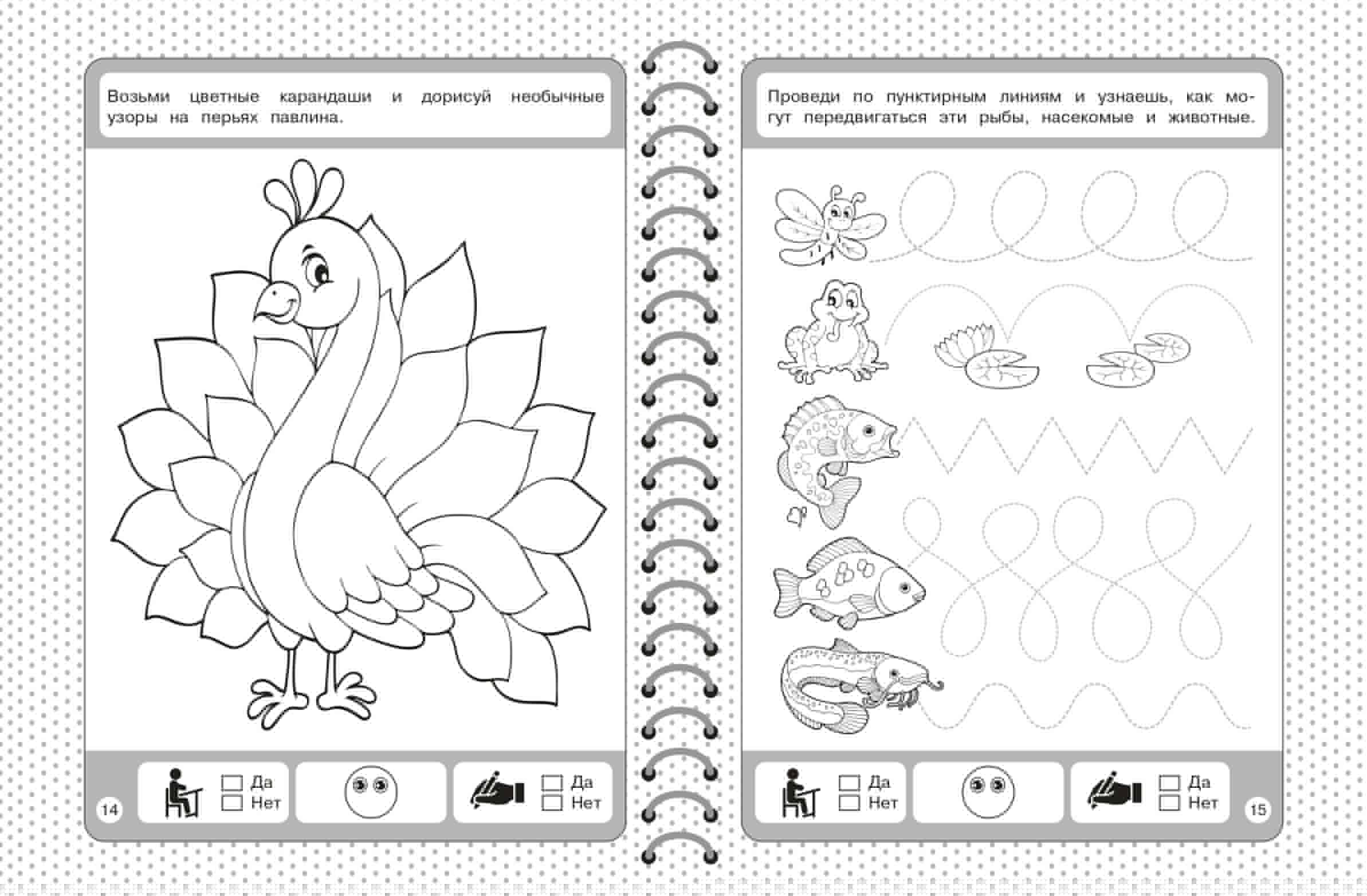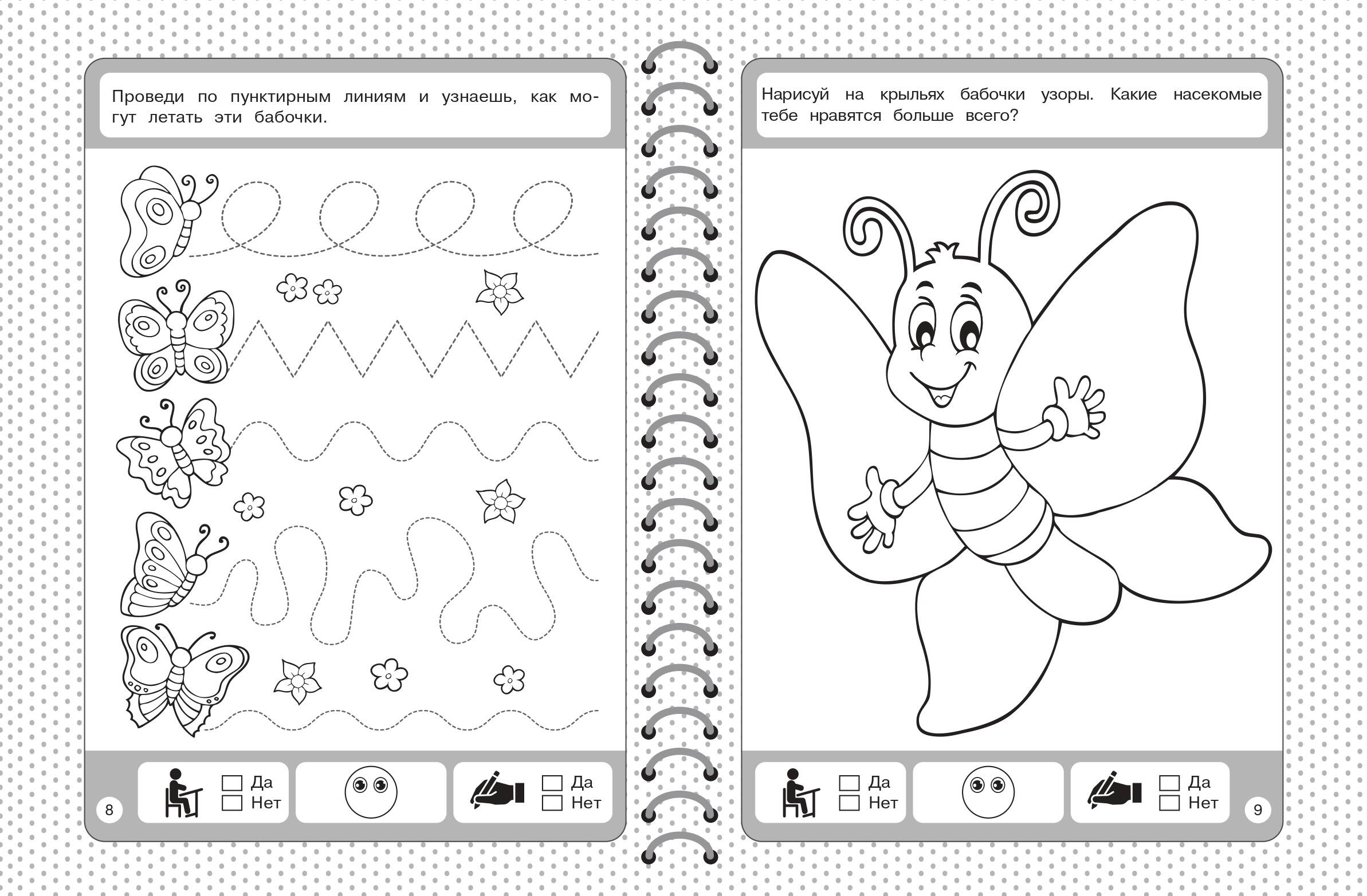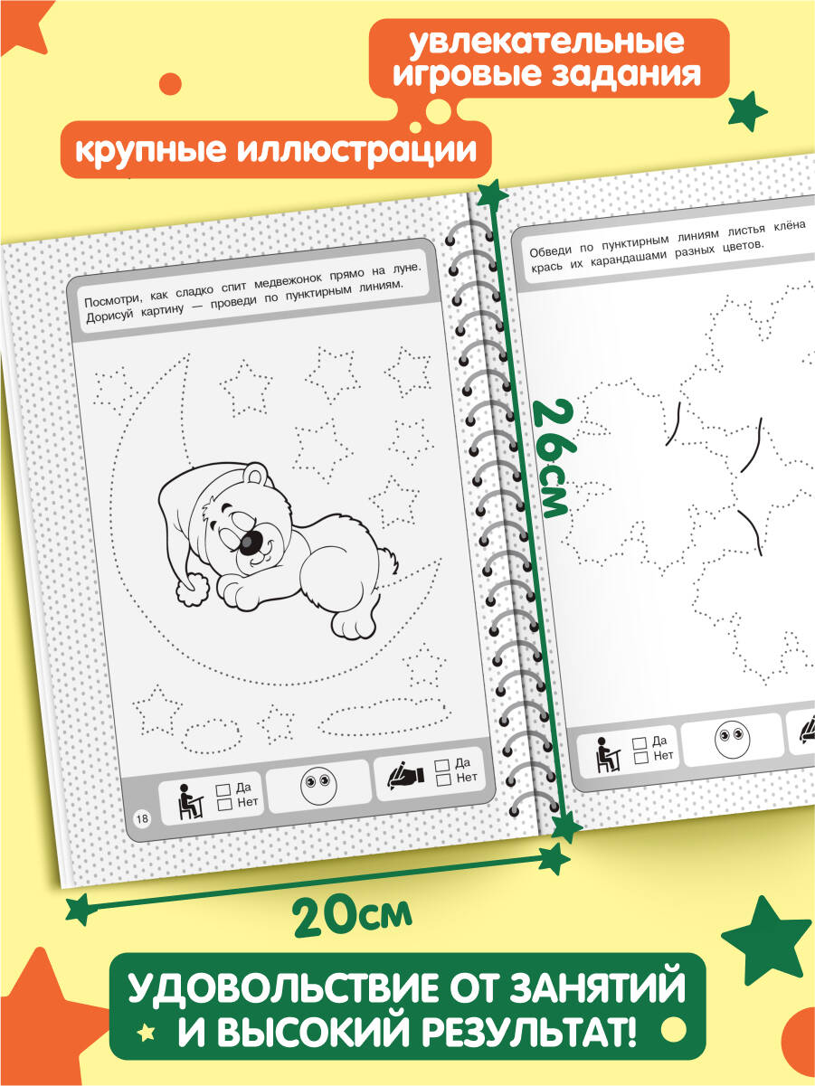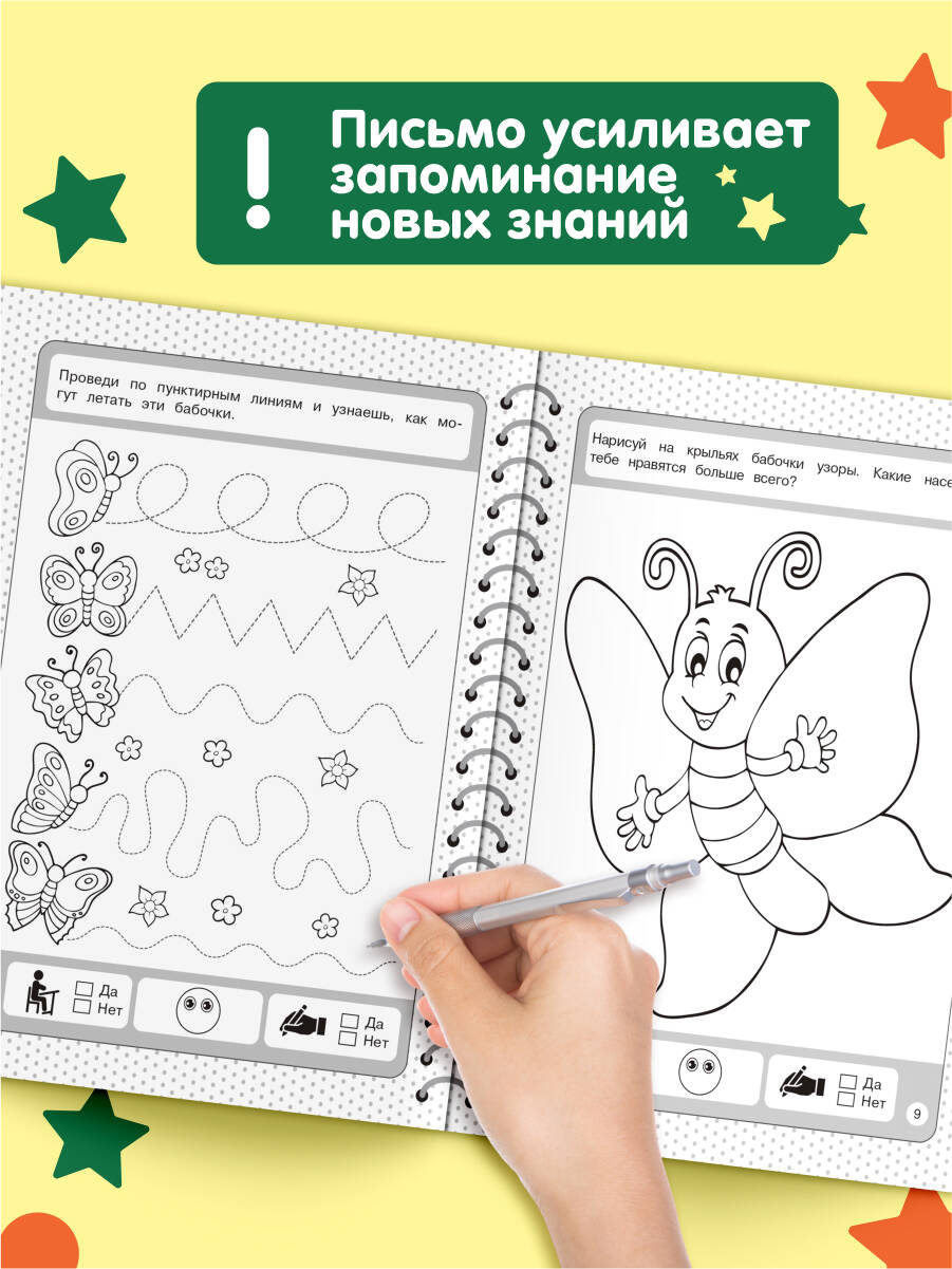 Книга от издательства «Эксмо» — это настоящая находка для родителей, чьи дети скоро пойдут в 1 класс. Пособие, соответствующее ФГОС, четко структурировано и поможет быстро и качественно подготовить руку ребенка к письму. Крупные занимательные картинки будут мотивировать ребенка, и он получить огромное удовольствие от своей деятельности. Занимаясь, дошкольник будет аккуратно обводить по пунктиру и проводить разные типы линий, проходить веселые лабиринты, рисовать узоры. Внизу каждой страницы имеются значки для оценки выполненных заданий. Поставив галочку в клетках «да» или «нет», ребенок сможет проконтролировать себя, а нарисовав ротик у смайлика вверх или вниз — оценить результат (хорошо / не очень хорошо). Постоянная работа с пособием поможет дошкольнику развить мелкую моторику, графические навыки, внимание, творческие способности, стать более усидчивым и аккуратным.