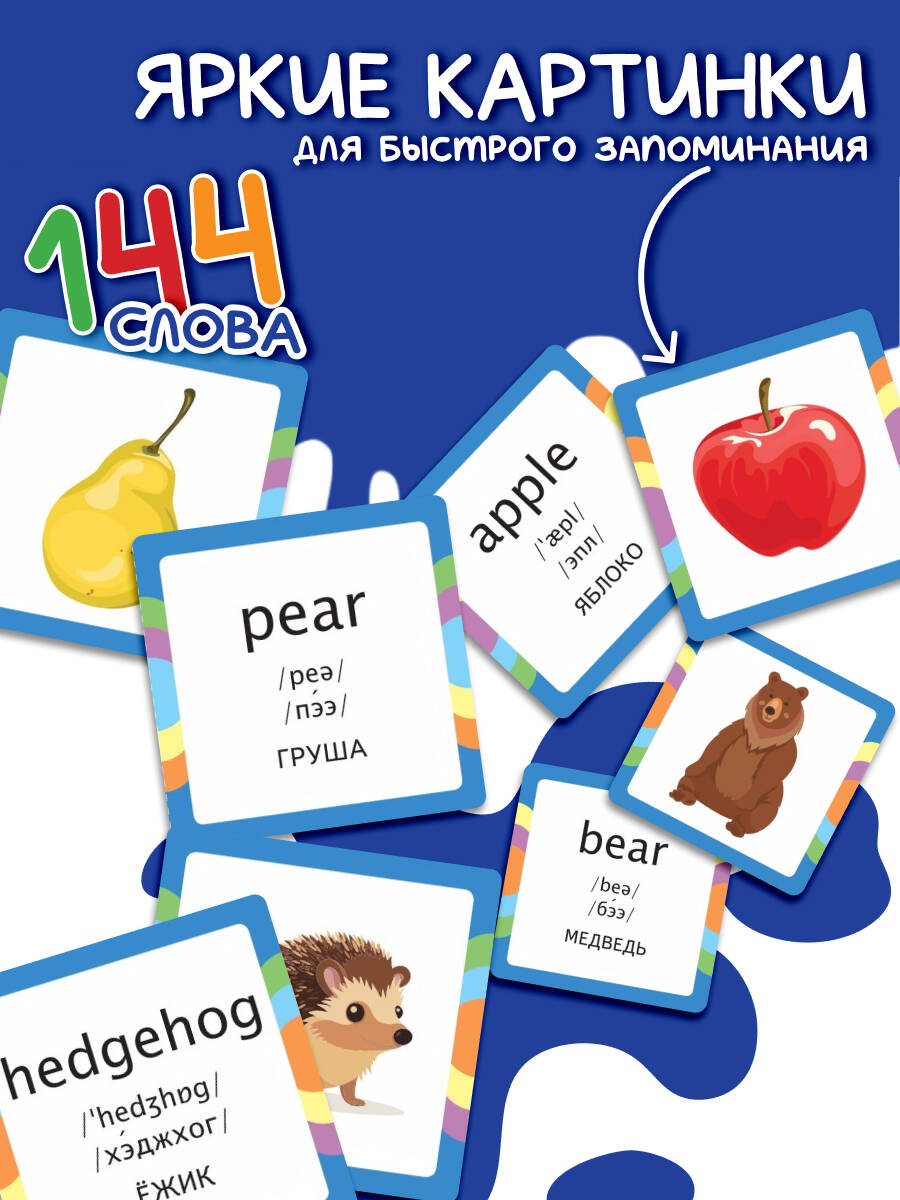 Детские развивающие карточки для изучения английского языка для детей 3, 4, 5, 6 лет — это эффективный инструмент, который поможет ребёнку незаметно для себя запомнить более 100 английских слов, научиться правильно их произносить, читать, с первого взгляда узнавая начертание, и понимать слова без словаря. Играть с карточками очень весело и увлекательно! Они подходят как для домашнего обучения иностранному языку, так и для занятий в детском саду. Набор представляет собой 24 картонных листа, каждый из которых ребёнок самостоятельно может разрезать на 6 частей. И у него будут 144 цветные флэш карточки для запоминания. В наборе есть брошюра-раскладушка с подробными методическими рекомендациями, которые помогут взрослым правильно организовать обучающие игры, и цветная книга с заданиями. Занимаясь по ней, ребёнок сможет закрепить изученный материал. Упражнения из книги можно рассматривать в качестве тестовых заданий для контроля полученных знаний и навыков. Играя и рассматривая яркие картинки, дошкольник сделает первые шаги в изучении english и пополнит свой словарный запас. С таким набором развивашек будет легче начать подготовку и обучение по английскому языку к школе. Карточки прекрасно оформлены и станут отличным подарком мальчикам и девочкам к любому празднику.
