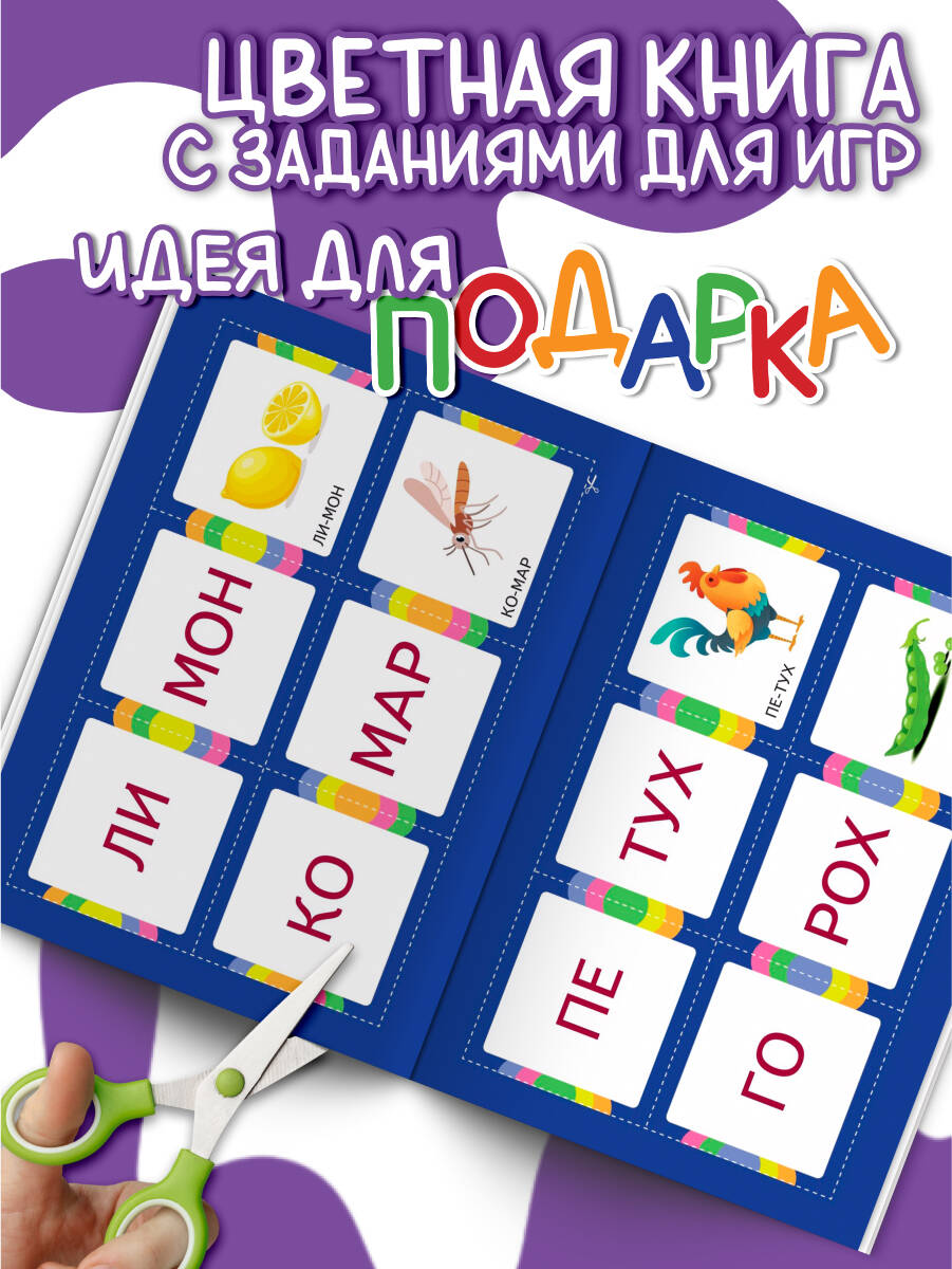Карточки для развивающих игр — это эффективный инструмент, который поможет ребёнку научиться читать, понимая смысл прочитанного. Играть с обучающими карточками очень весело и увлекательно! Они подходят как для занятий дома, так и в детском саду. Набор представляет собой 24 картонных листа, каждый из которых ребёнок самостоятельно может разрезать на 6 частей. И у него будет 144 цветные карточки для чтения (можно использовать как карточки для запуска речи), которые помогут развивать речевые навыки и улучшить коммуникацию. В наборе есть брошюра-раскладушка с подробными методическими рекомендациями, которые помогут взрослым правильно организовать обучающие игры, и цветная книга с заданиями. Занимаясь по ней, ребёнок сможет закрепить изученный материал. Упражнения из книги можно рассматривать в качестве тестовых заданий для контроля полученных знаний и навыков. Играя с детскими развивающими карточками, и рассматривая яркие картинки, дети 4-5-6 лет быстро и легко научатся читать по слогам и сделают первые шаги к осознанному чтению. Карточки прекрасно оформлены и станут отличным подарком мальчикам и девочкам к любому празднику.