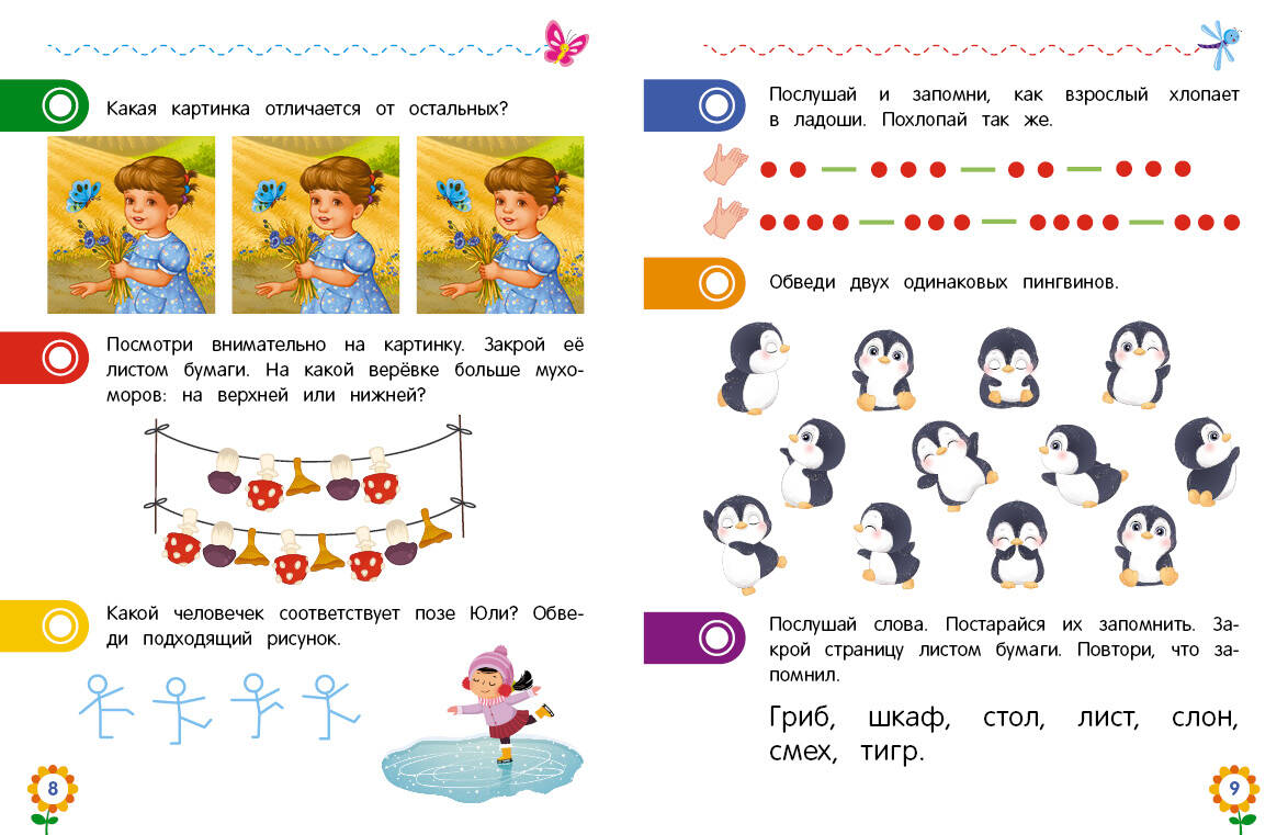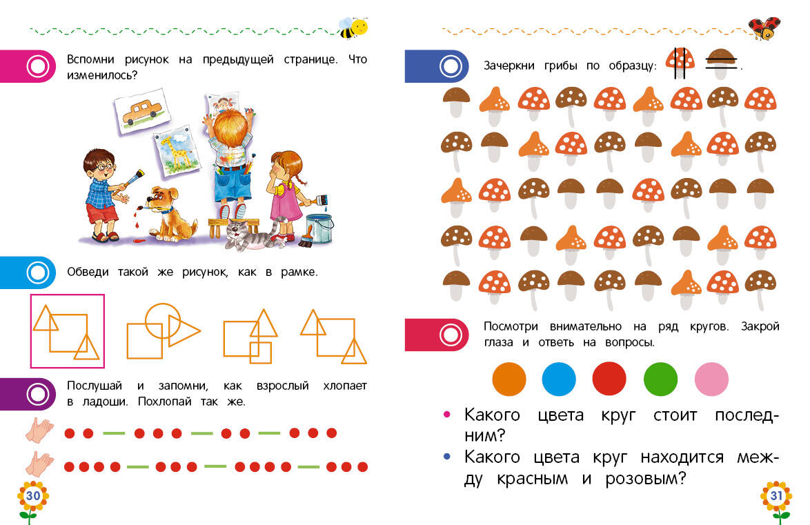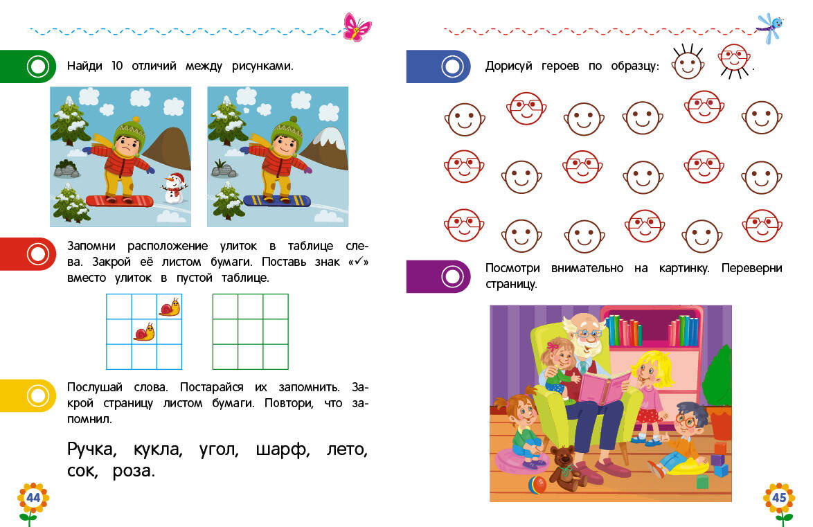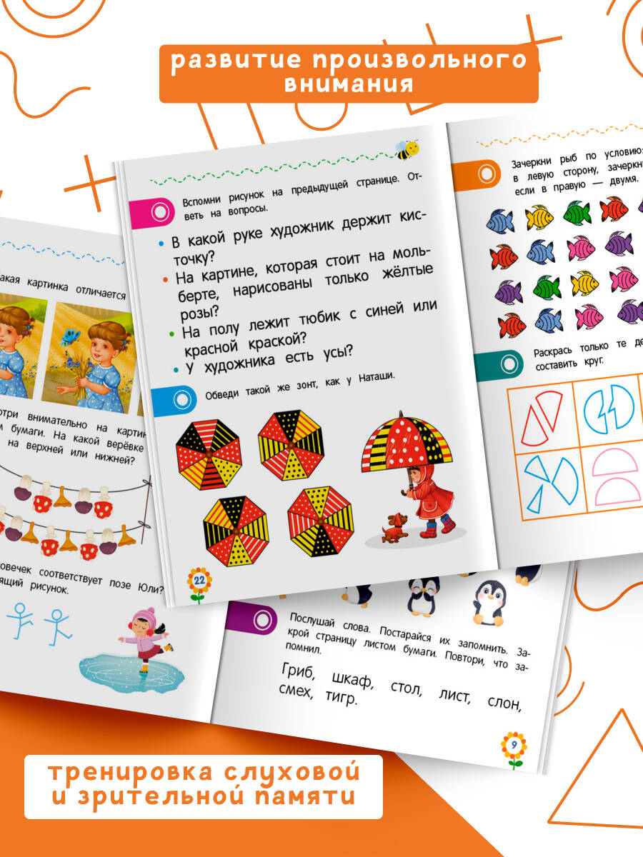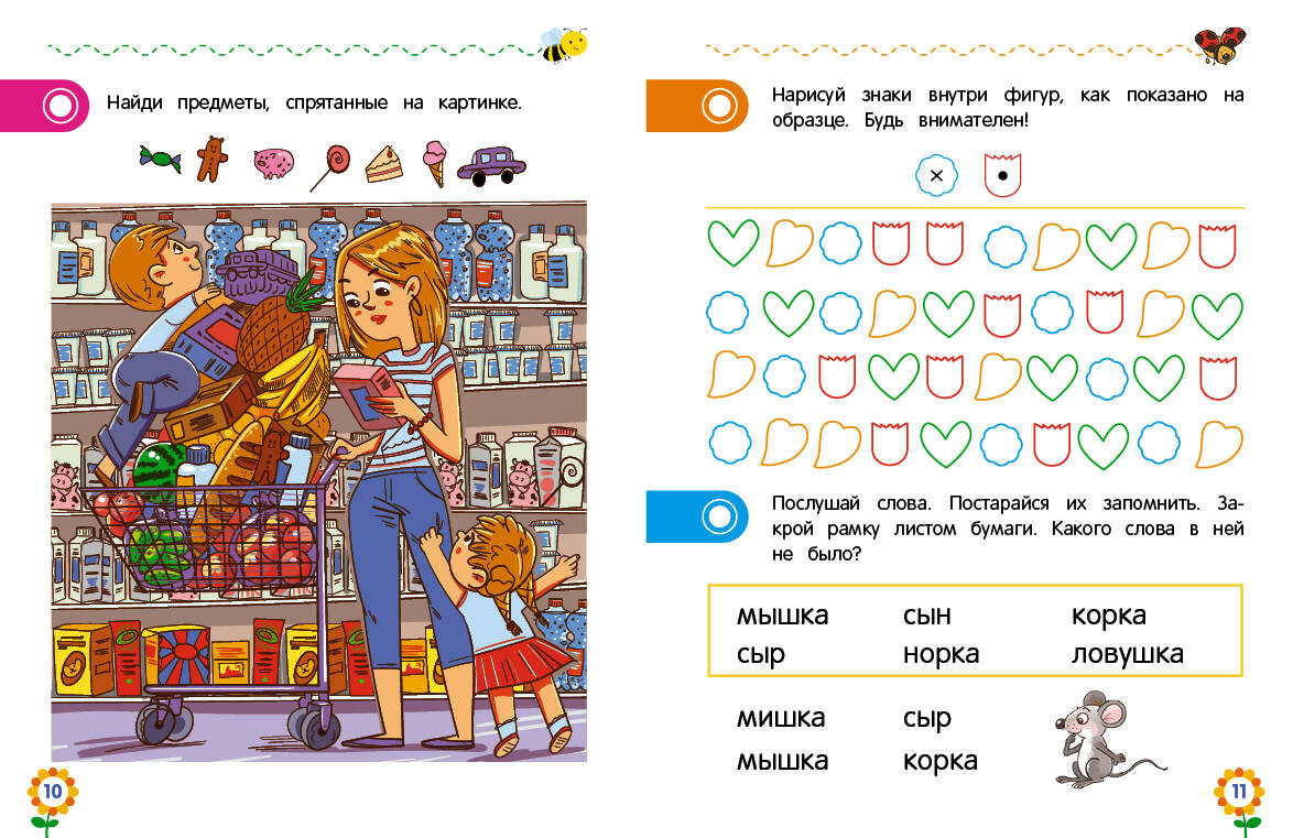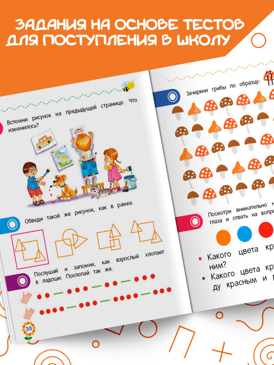 Поступление в 1 класс — важнейший этап в жизни ребёнка, и к нему нужно хорошо подготовиться. Тренажёр включает в себя задания разного типа на проверку степени усвоения базовых навыков и умений, необходимых для дальнейшего обучения. С помощью пособия можно проверить у дошкольника уровень развития произвольного внимания, слуховой и зрительной памяти, способности к переключению и удержанию внимания и понять: умеет ли он находить одинаковые рисунки, предметы такие же, как в рамке; дорисовывать по образцу; искать то, что спрятано на картинке; сопоставлять предмет с его тенью; обводить по условию. Задания, представленные в тренажере, помогут оценить способности ребёнка, определить, с чем он справляется успешно, и выделить те области, которые вызывают у него затруднения. Книга-развивашка от издательства «Эксмо» будет полезна девочкам и мальчикам 5, 6, 7 лет для подготовки к школе. Рекомендуем также приобрести пособия: «Чтение», «Графические навыки», «Логическое мышление», «Первая математика».