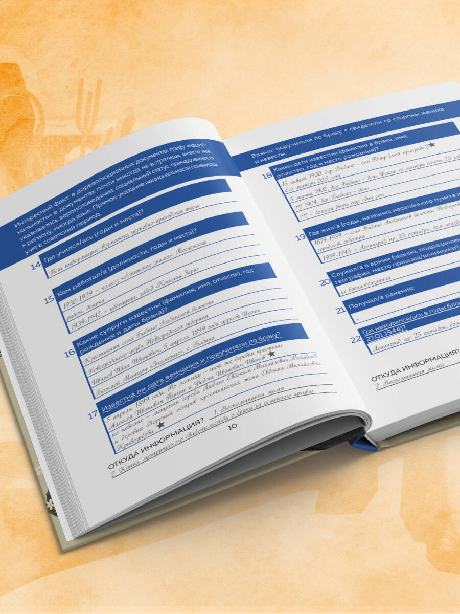 - Собрать и упорядочить информацию в анкетах: от опроса родственников до анализа архивных документов.