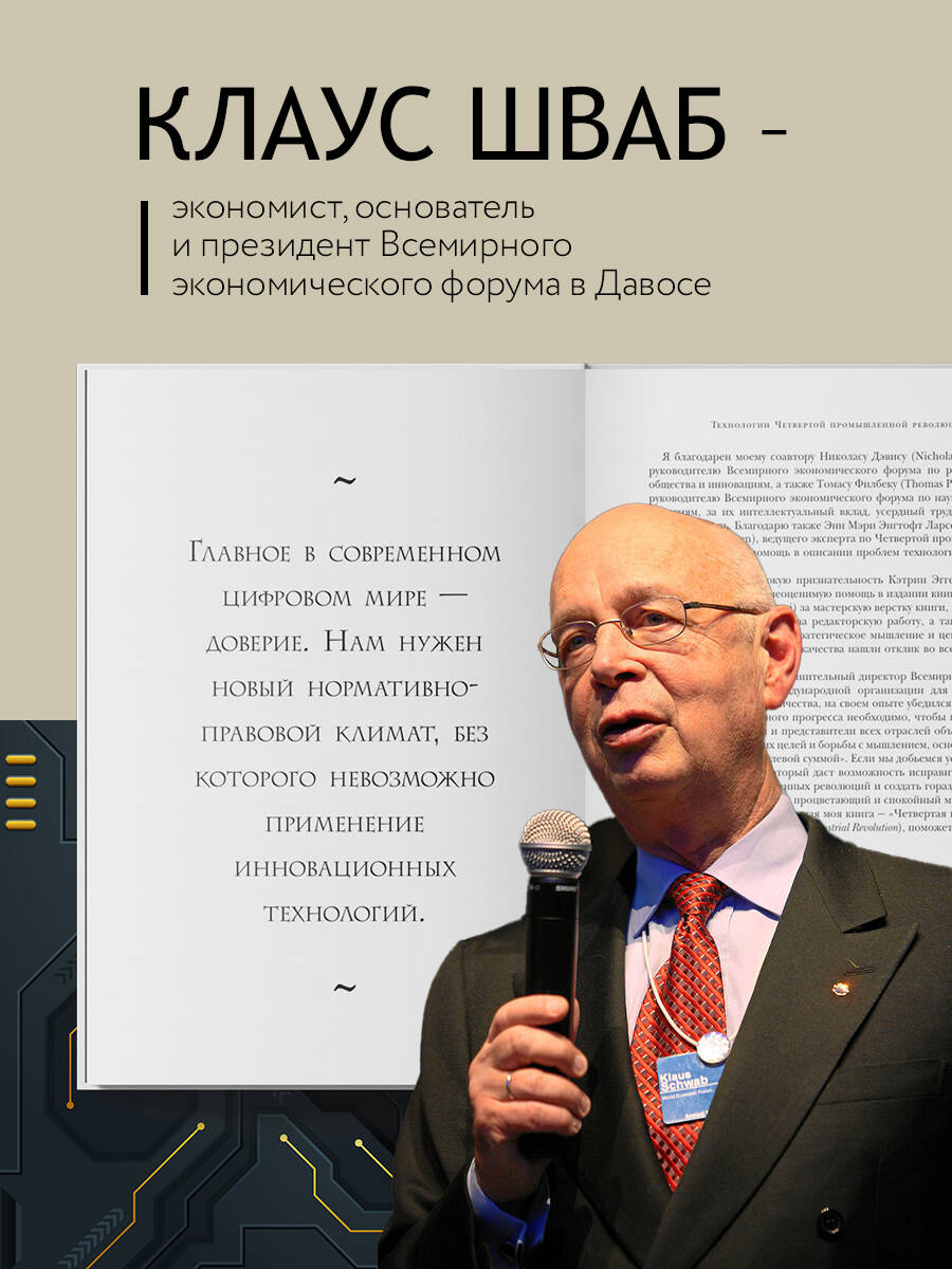 «Перемены, которые привнесла в нашу жизнь четвертая промышленная революция, находят отражение в каждой сфере бизнеса. Сегодня для того, чтобы выигрывать в конкурентной борьбе, недостаточно предлагать хорошие цены, высокий сервис и достойное качество продукта. Технологии могут сделать вас аутсайдером или лидером, все зависит от того, как быстро вы ими овладеете. На смену успешной корпорации может прийти маленькая компания, чей адресный маркетинг обеспечивает искусственный интеллект. Такая компания доносит свои ценности моментально и именно теми словами, которых ждет ее целевая аудитория. И это решает всё. Оставайтесь сильными, будьте в курсе технологических прорывов и первыми применяйте их в бизнесе - в этом вам поможет новая книга Клауса Шваба!» - Олег Новиков, президент издательской группы «Эксмо-АСТ»