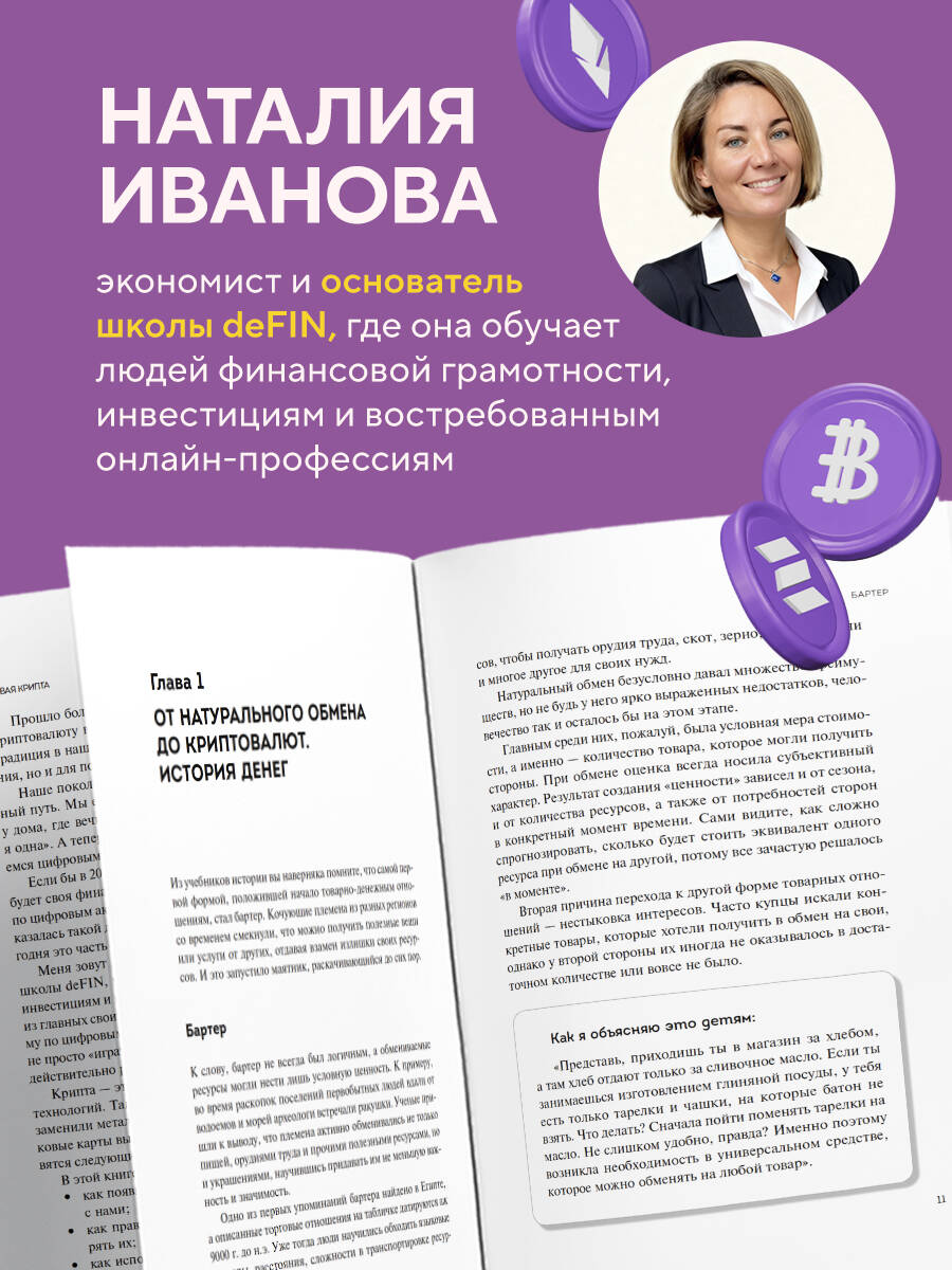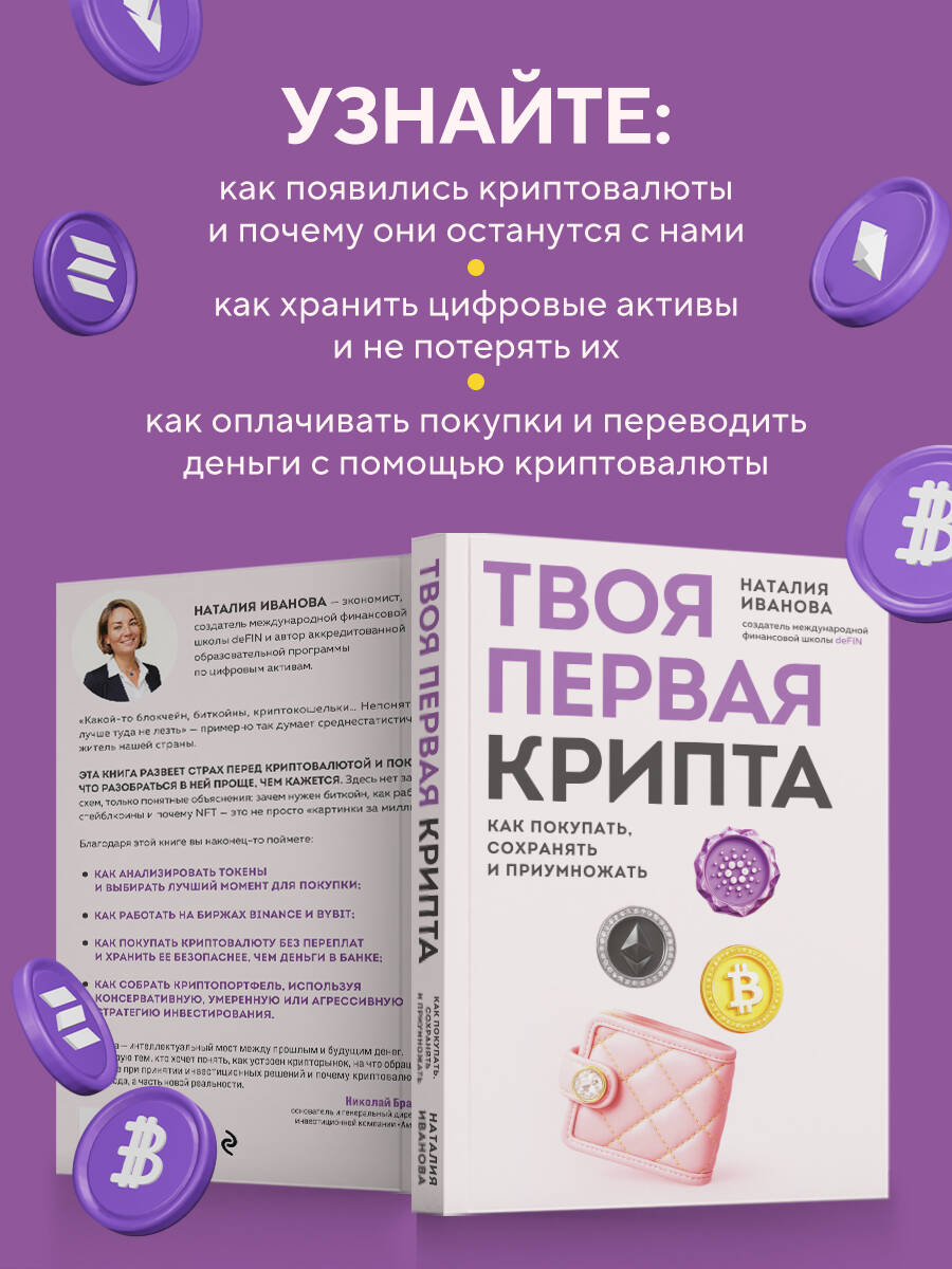 Эта книга развеет страх перед криптовалютой и покажет, что разобраться в ней проще, чем кажется. Здесь нет заумных схем, только ясные объяснения: зачем нужен биткойн, как работают стейблкоины и почему NFT — это не просто «картинки за миллионы».