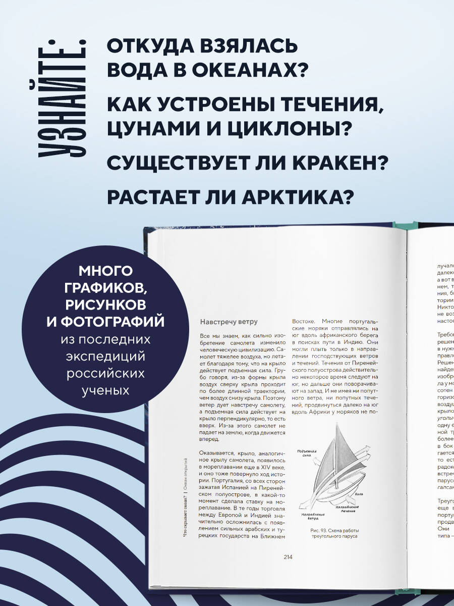 Книга популярного российского океанолога Александра Осадчиева, участника и руководителя более 30 морских экспедиций, дает общее представление об океанологии и входящих в нее направлениях, таких как морская биология, физика и химия моря, морская геология и другие. Вы прочитаете, как проходят научные морские экспедиции, как ученые наблюдают за течениями, составом воды, рельефами дна, контурами побережий, обитателями морей и океанов. Вы узнаете об истории исследования морей и морских экспедиций, о катастрофах и рекордах, связанных с морем, и о влиянии моря на жизнь человека — организацию перевозок, добычу продуктов питания и геополитику.